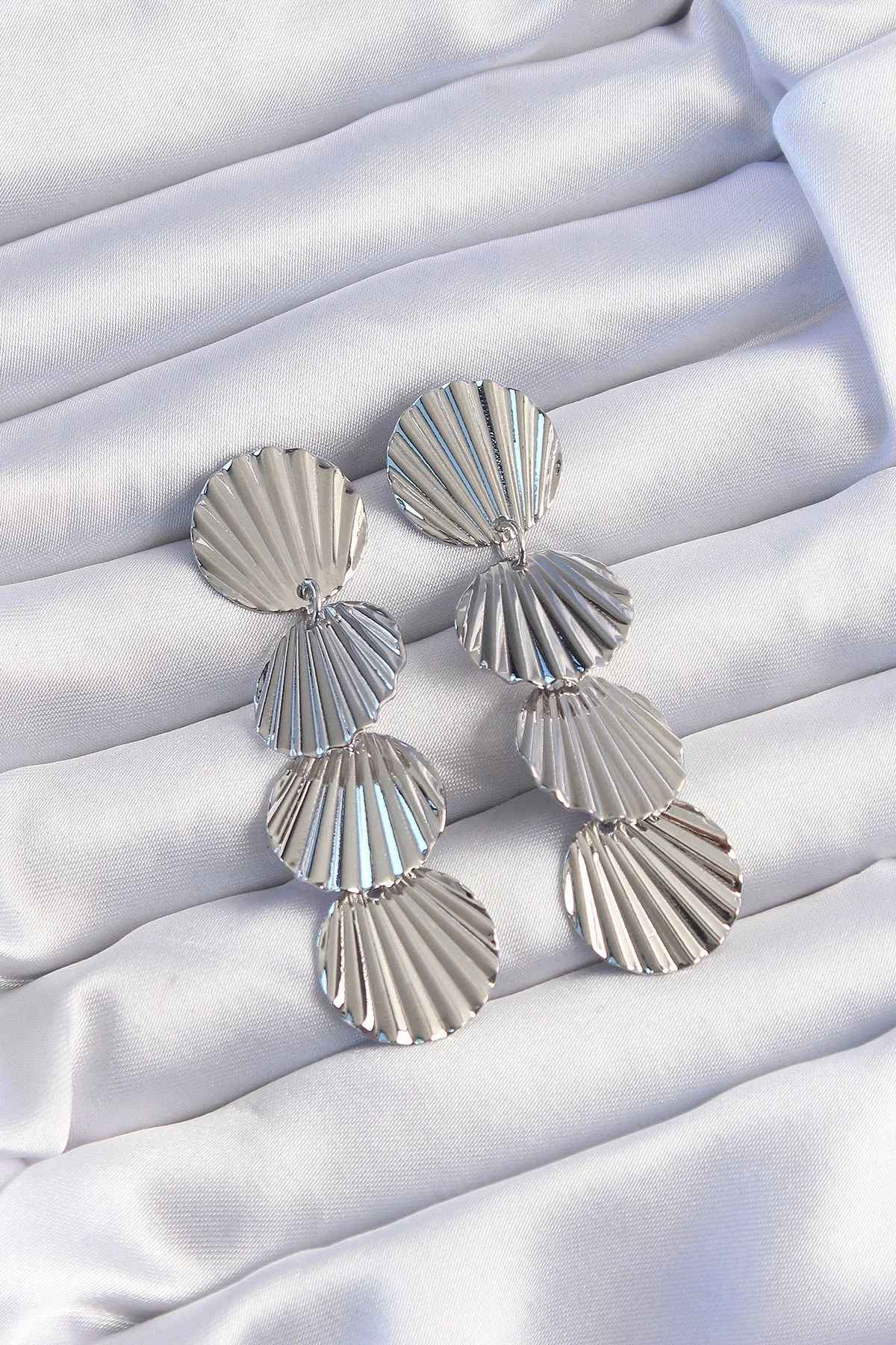 Pirinç Gümüş Renk Deniz Kabuğu Model Sallantılı Küpe
