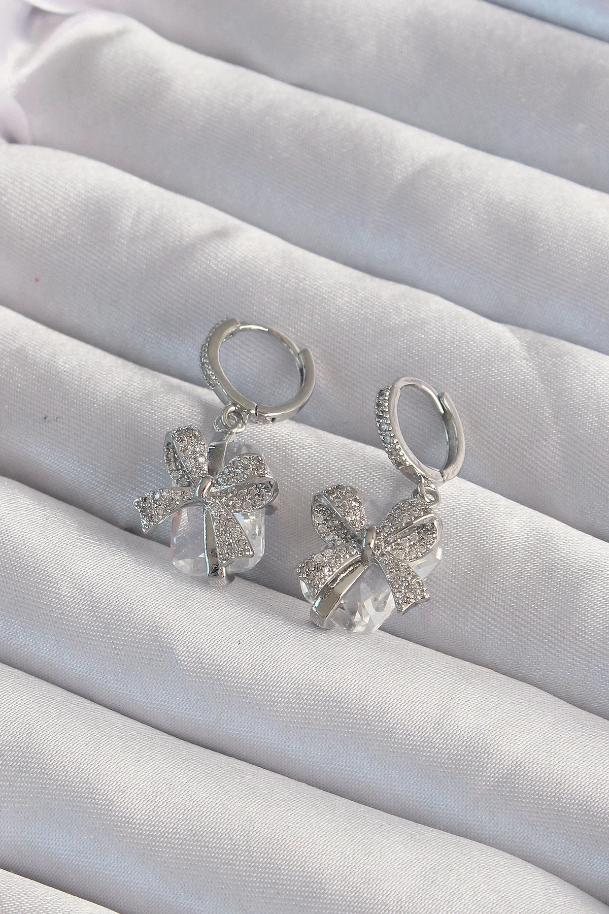 Pirinç Gümüş Renk İri Zirkon Taşlı Fiyonk Model Halka Küpe