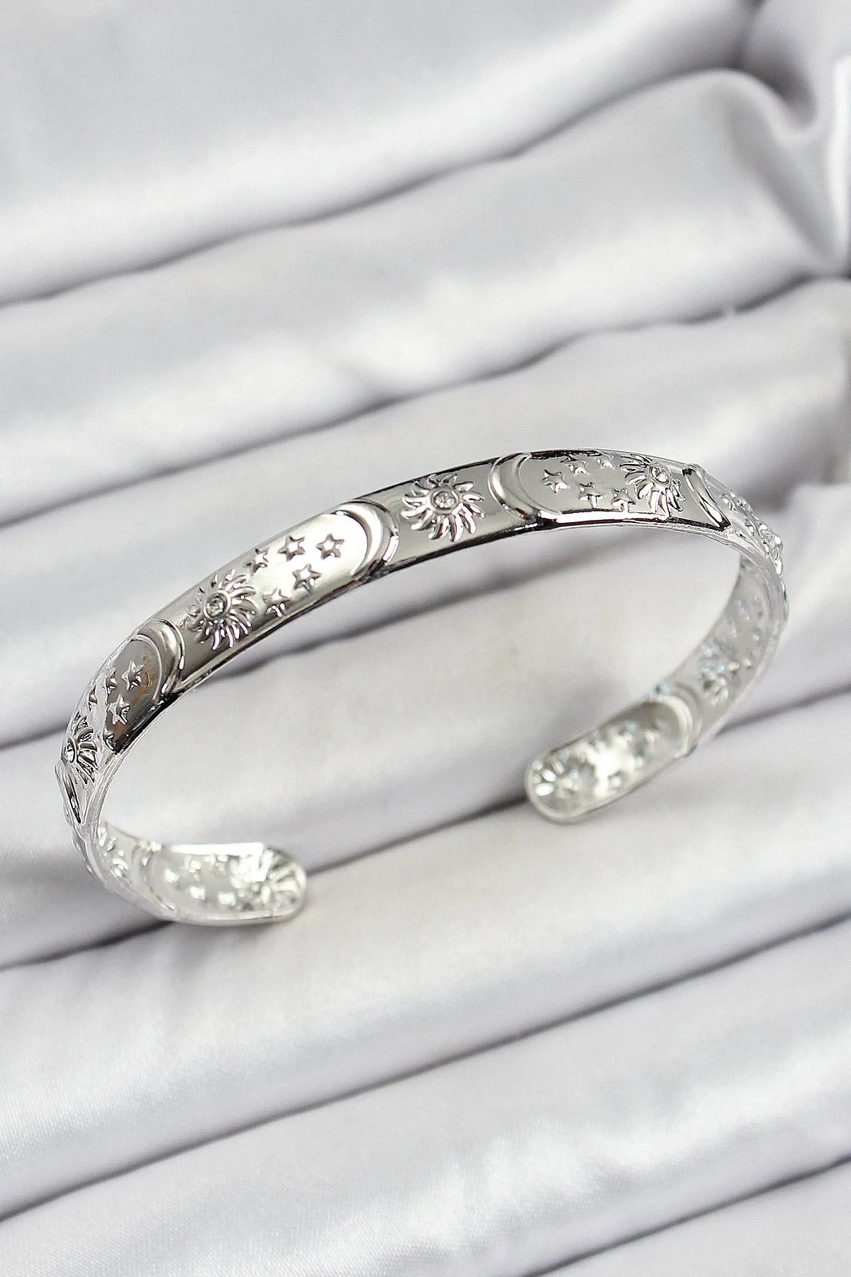 Pirinç Gümüş Renk İşlemeli Altı Açık Bileklik