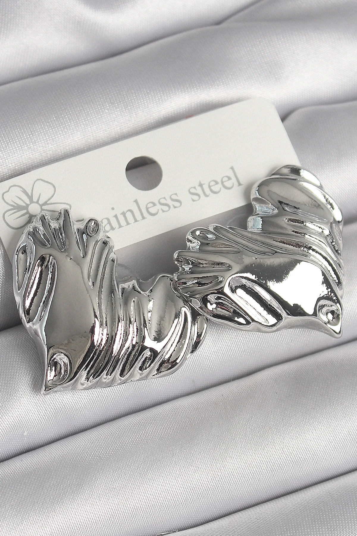 Pirinç Gümüş Renk İşlemeli Kalp Model Kadın Küpe