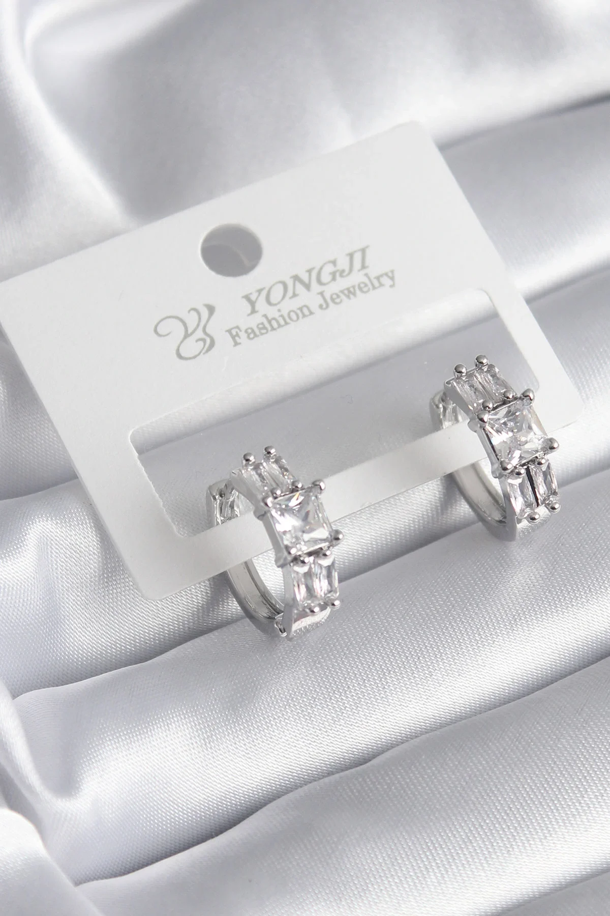 Pirinç Gümüş Renk Kare Zirkon Taşlı Kadın Küpe