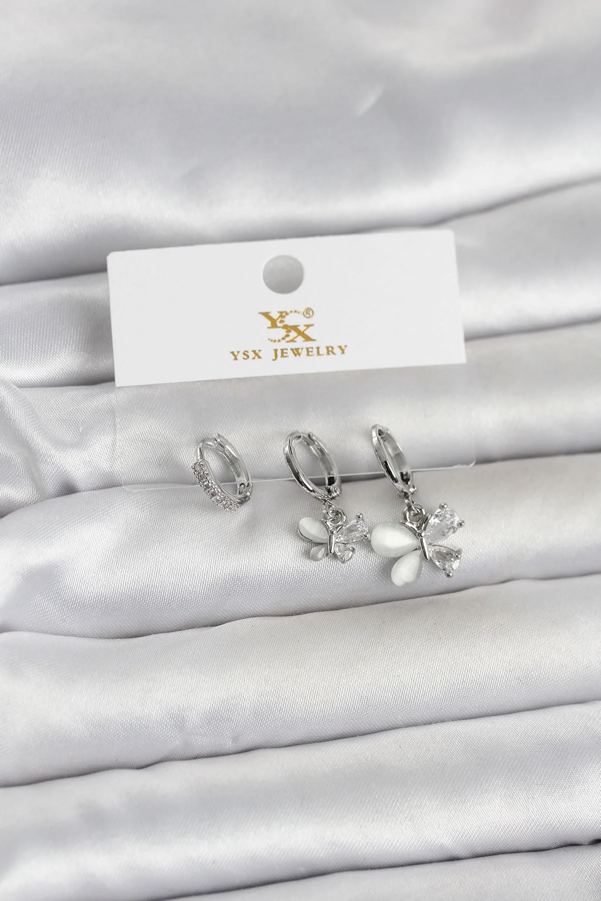 Pirinç Gümüş Renk Kelebek Model 3'lü Kadın Küpe