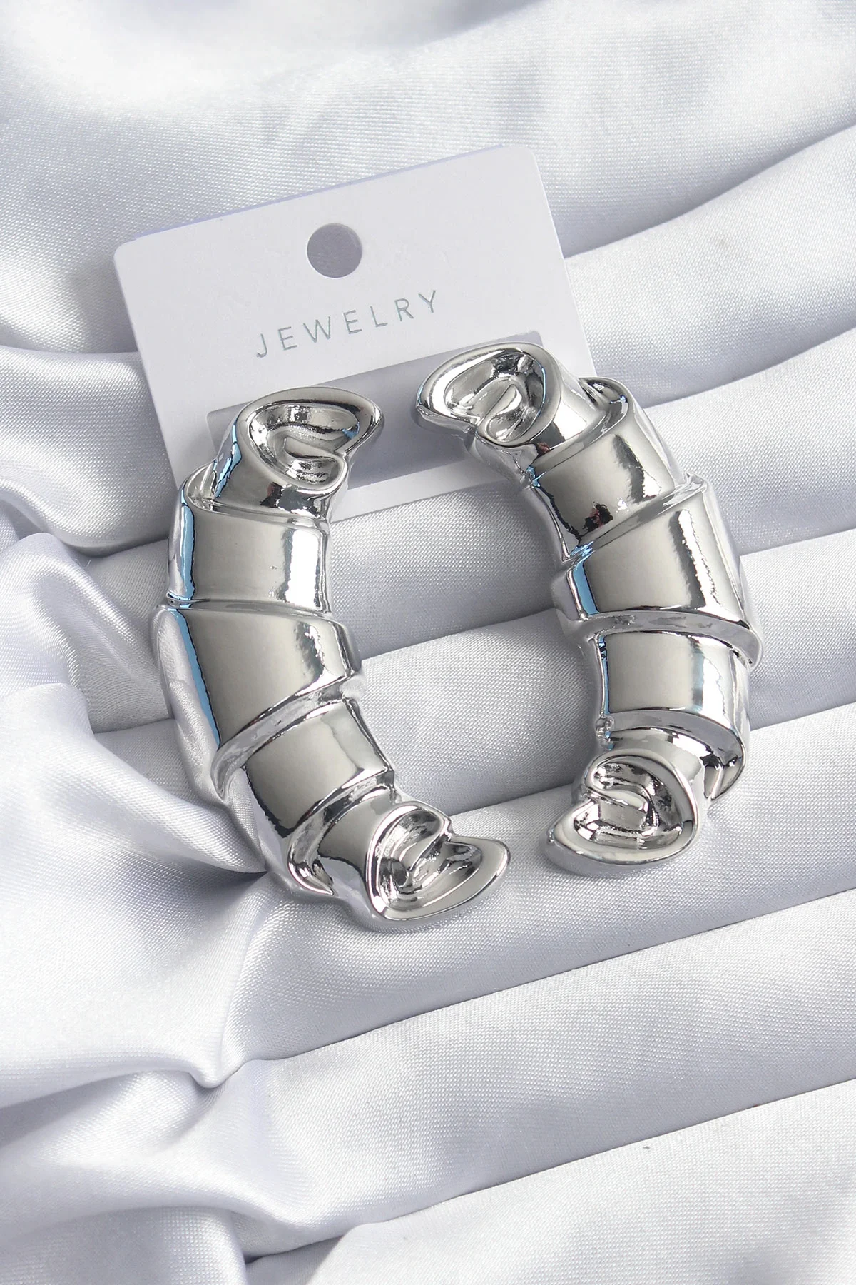 Pirinç Gümüş Renk Kruvasan Model Kadın Küpe