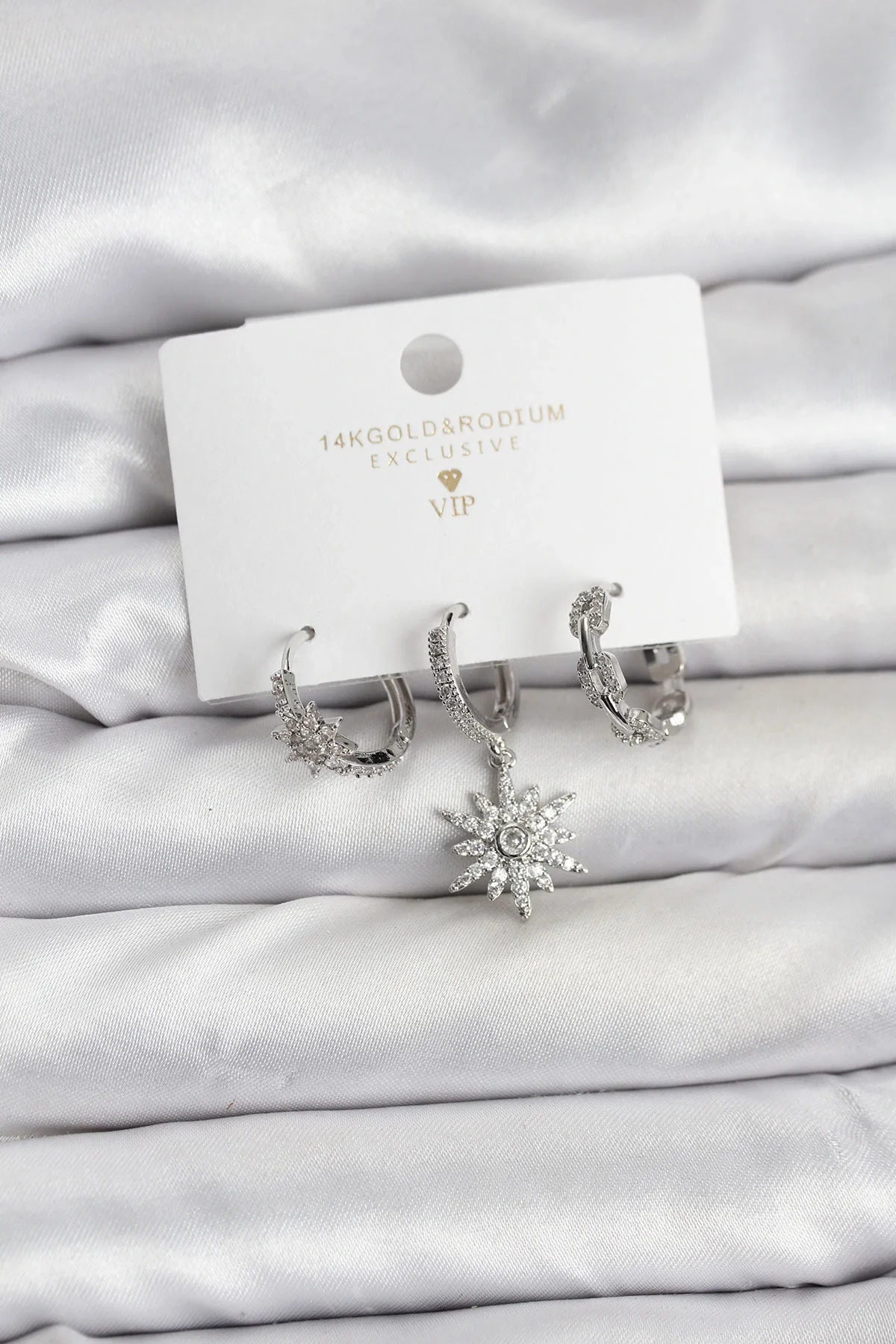 Pirinç Gümüş Renk Kutup Yıldızı Model 3'lü Kadın Küpe Seti