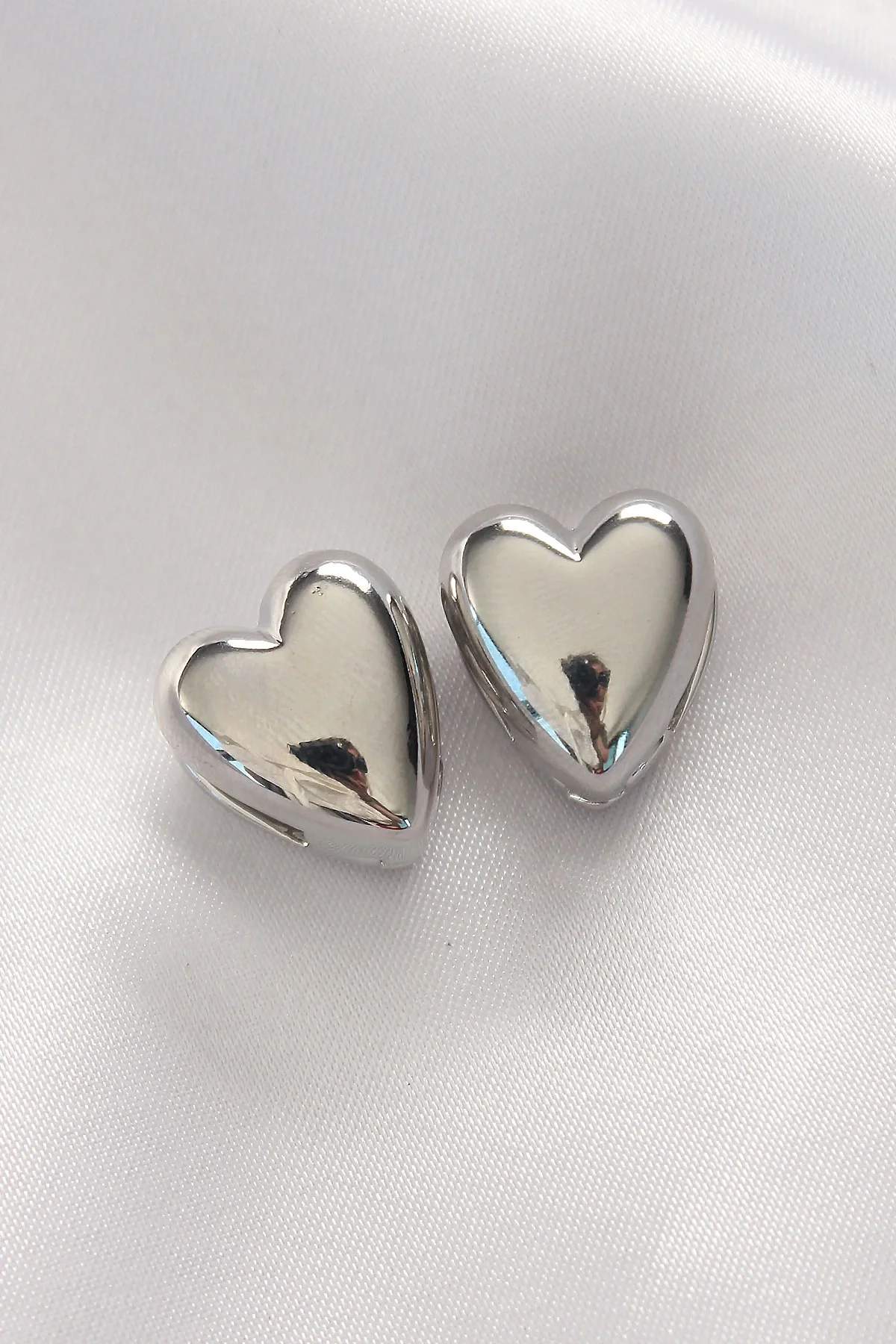 Pirinç Gümüş Renk Minimal Bombeli Kalp Küpe