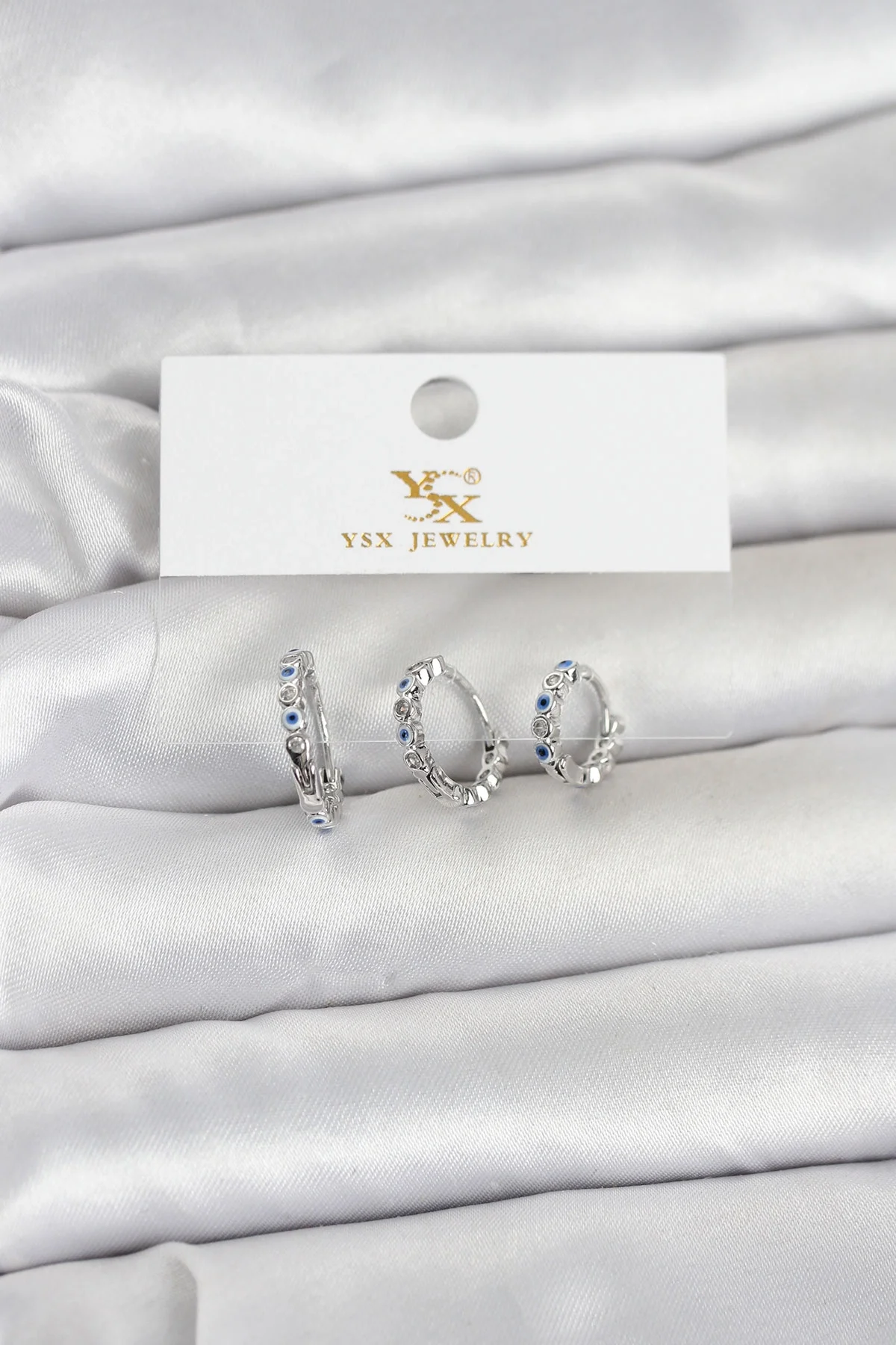 Pirinç Gümüş Renk Nazarlı Model 3'lü Kadın Küpe