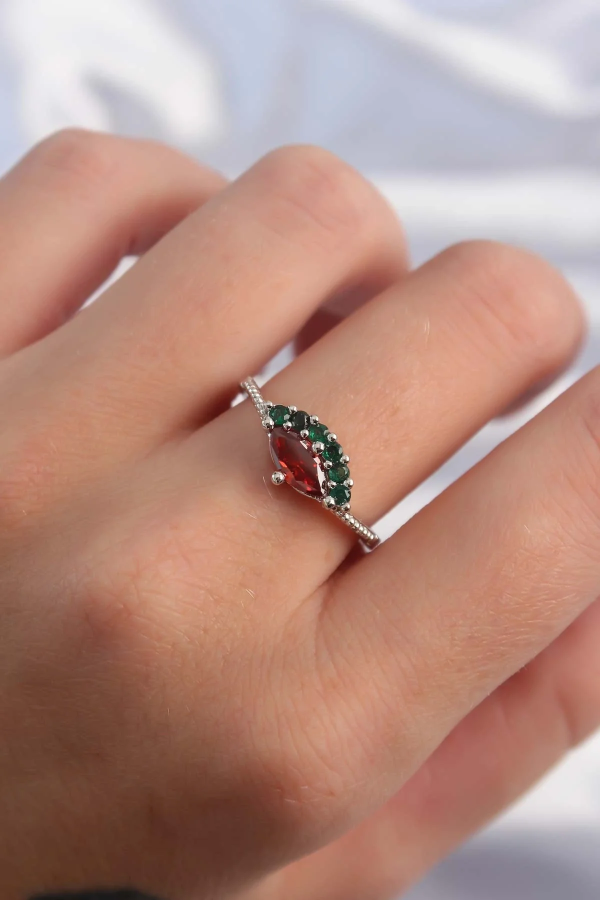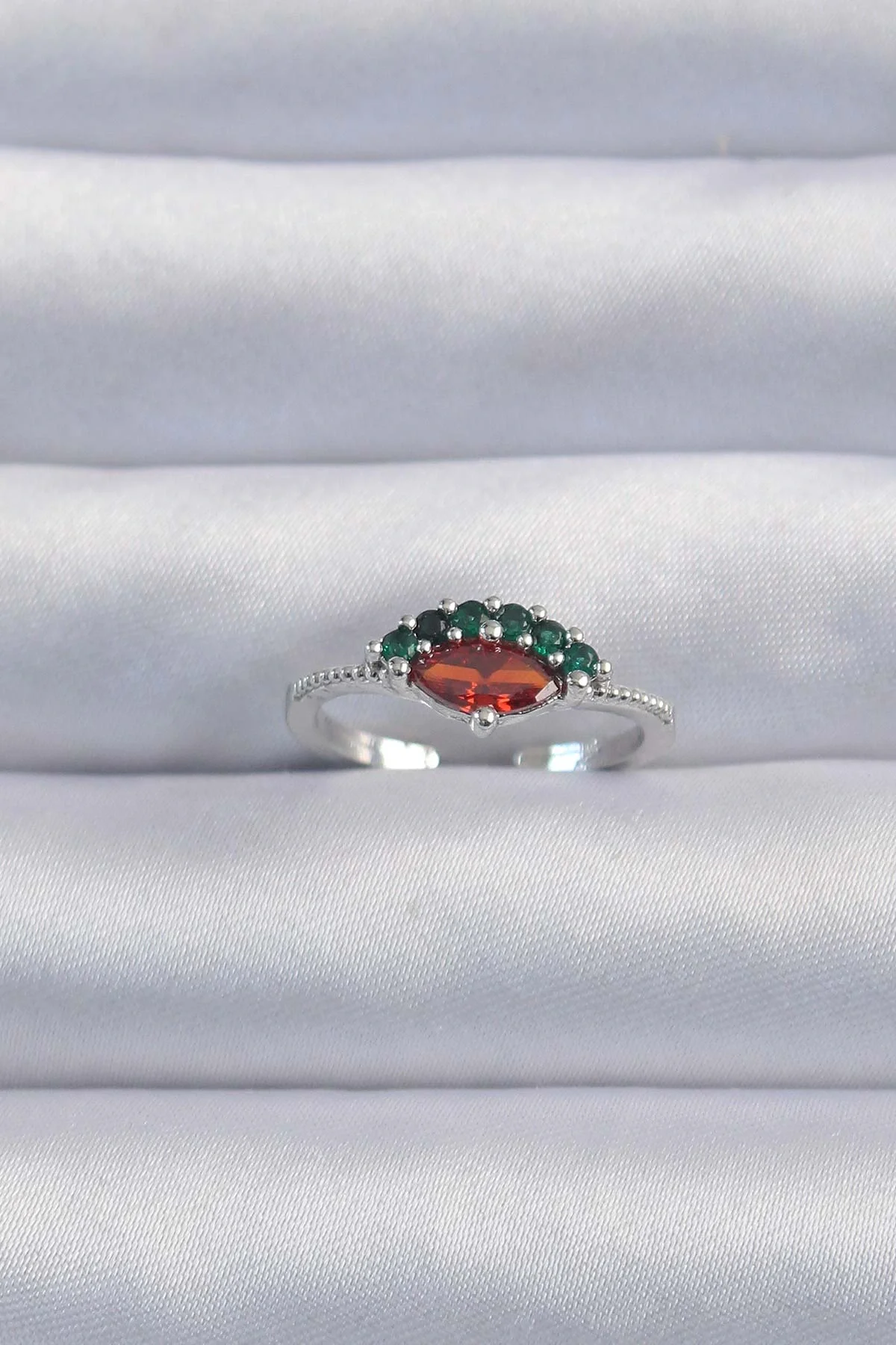 Pirinç Gümüş Renk Renkli Zirkon Taşlı Ayarlanabilir Karpuz Model Yüzük