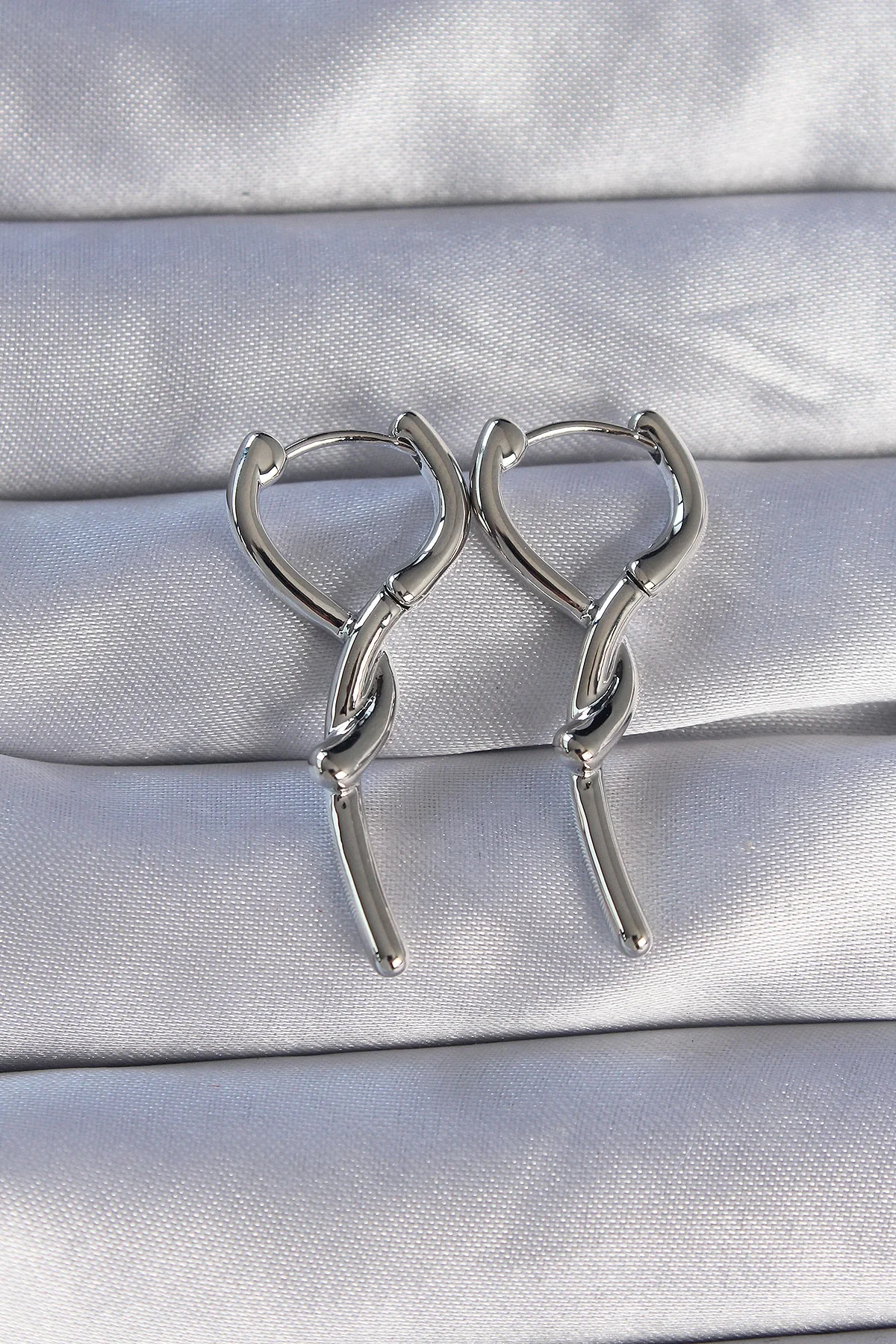 Pirinç Gümüş Renk Sarmal Çubuk Tasarımlı Uzun Küpe