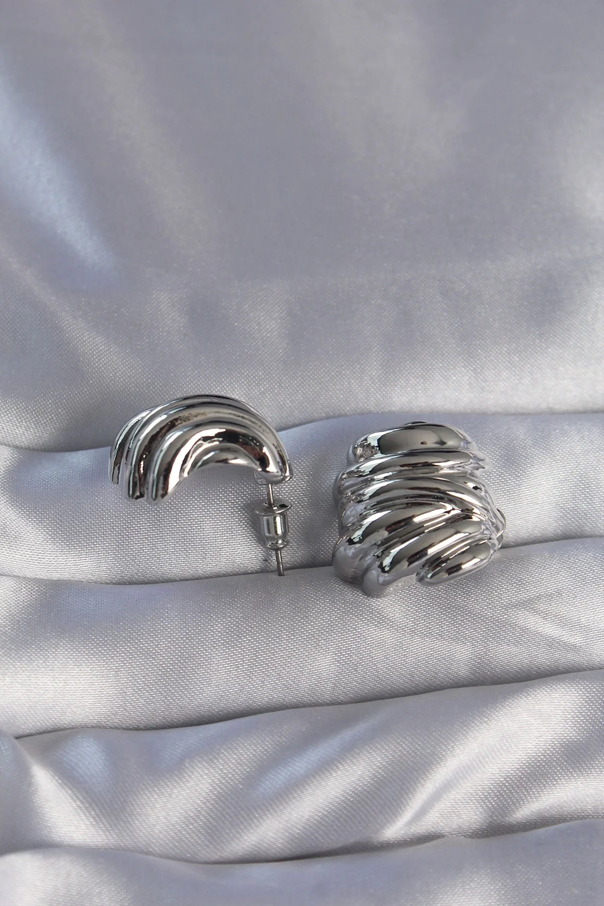 Pirinç Gümüş Renk Tırtıklı Bombe Model Küpe