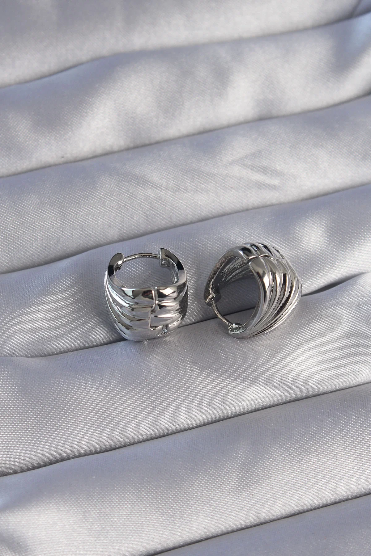 Pirinç Gümüş Renk Tırtıklı Minimal Bombeli Tasarım Küpe