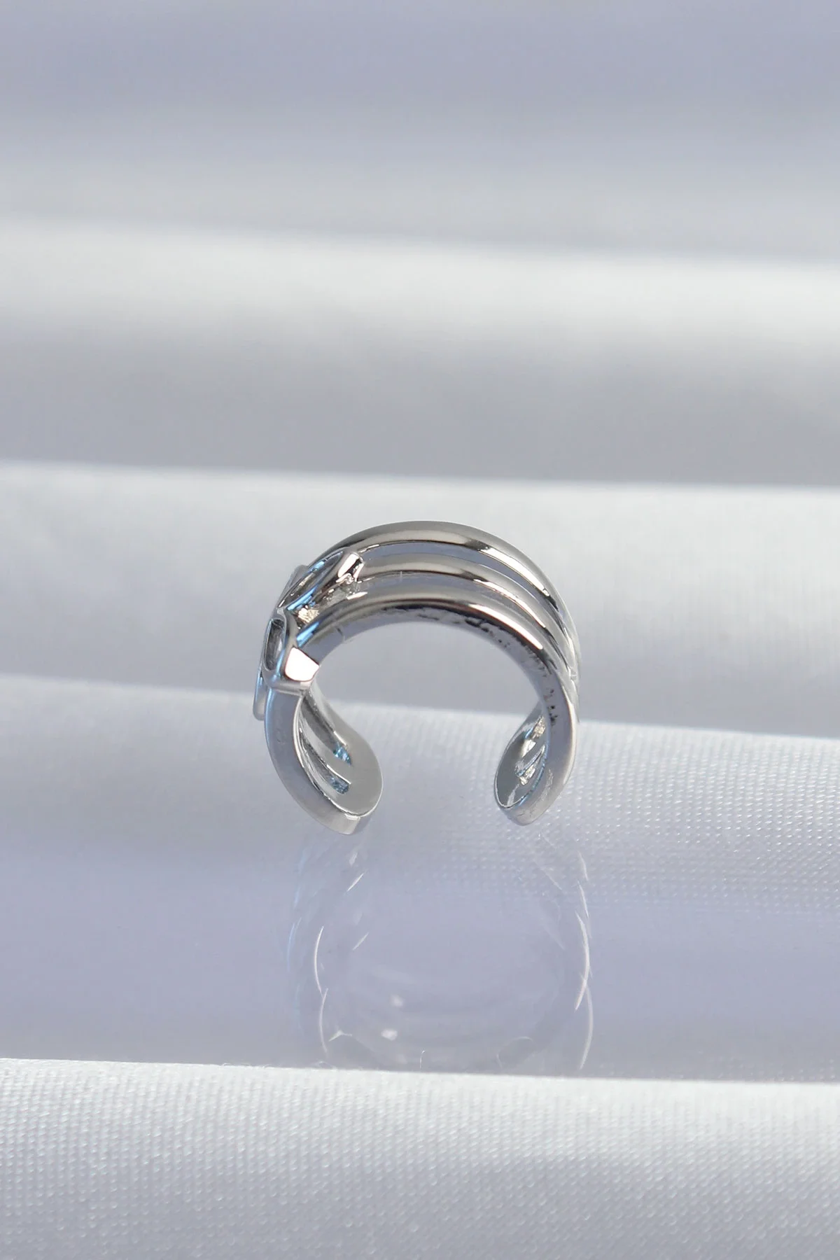 Pirinç Gümüş Renk Yonca Earcuff Küpe