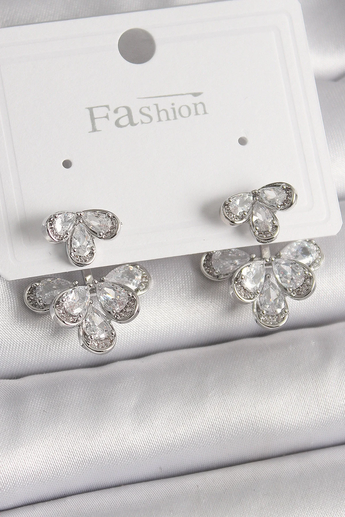 Pirinç Gümüş Renk Zirkon Taşlı Damla Model Kadın Küpe