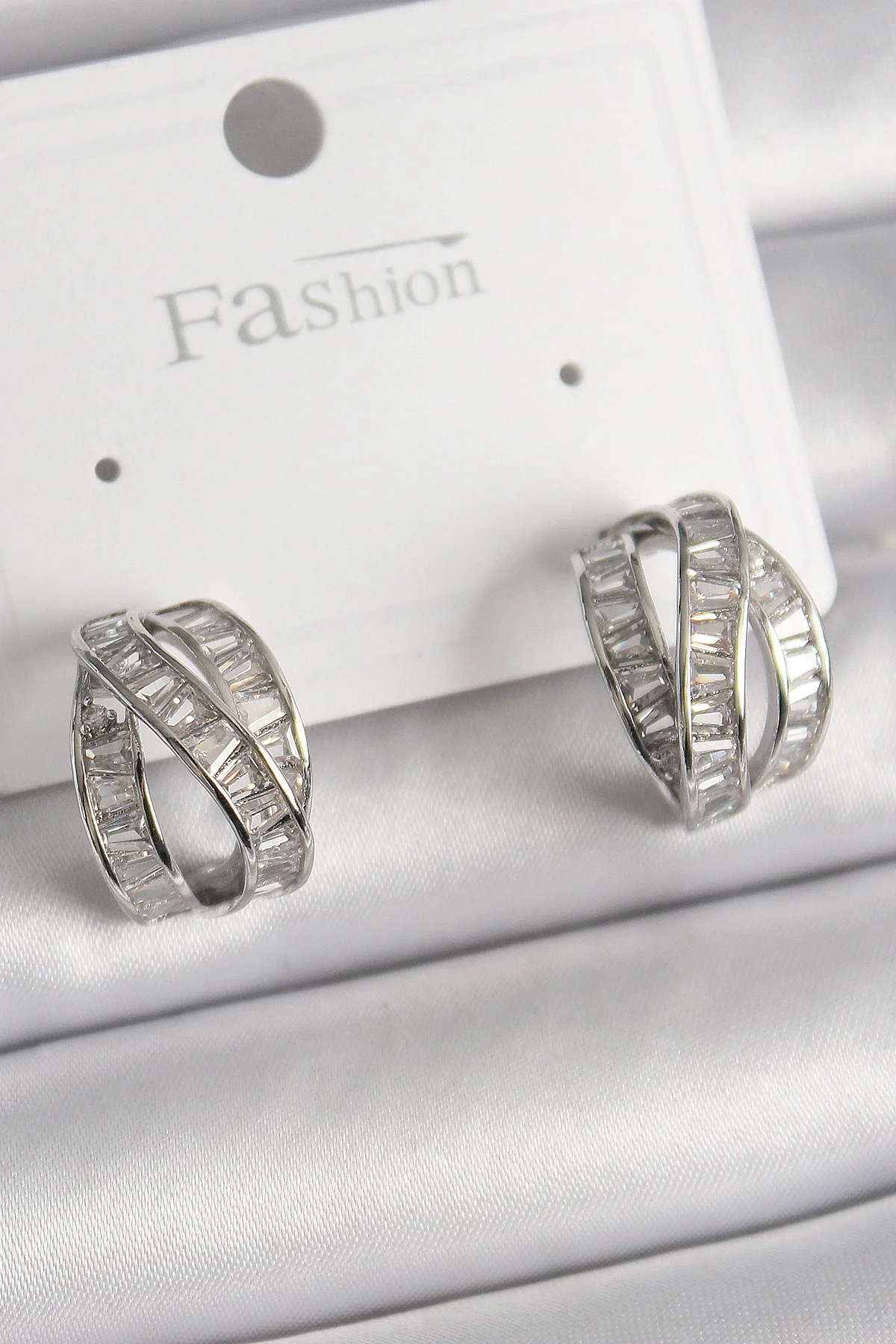 Pirinç Gümüş Renk Zirkon Taşlı Düğüm Halka Model Kadın Küpe