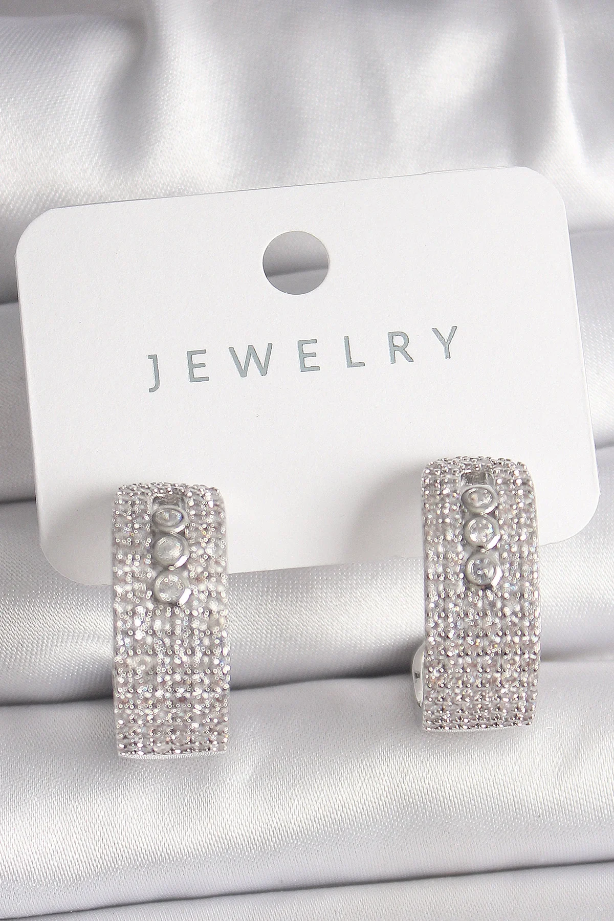 Pirinç Gümüş Renk Zirkon Taşlı Halka Messika Model Kadın Küpe