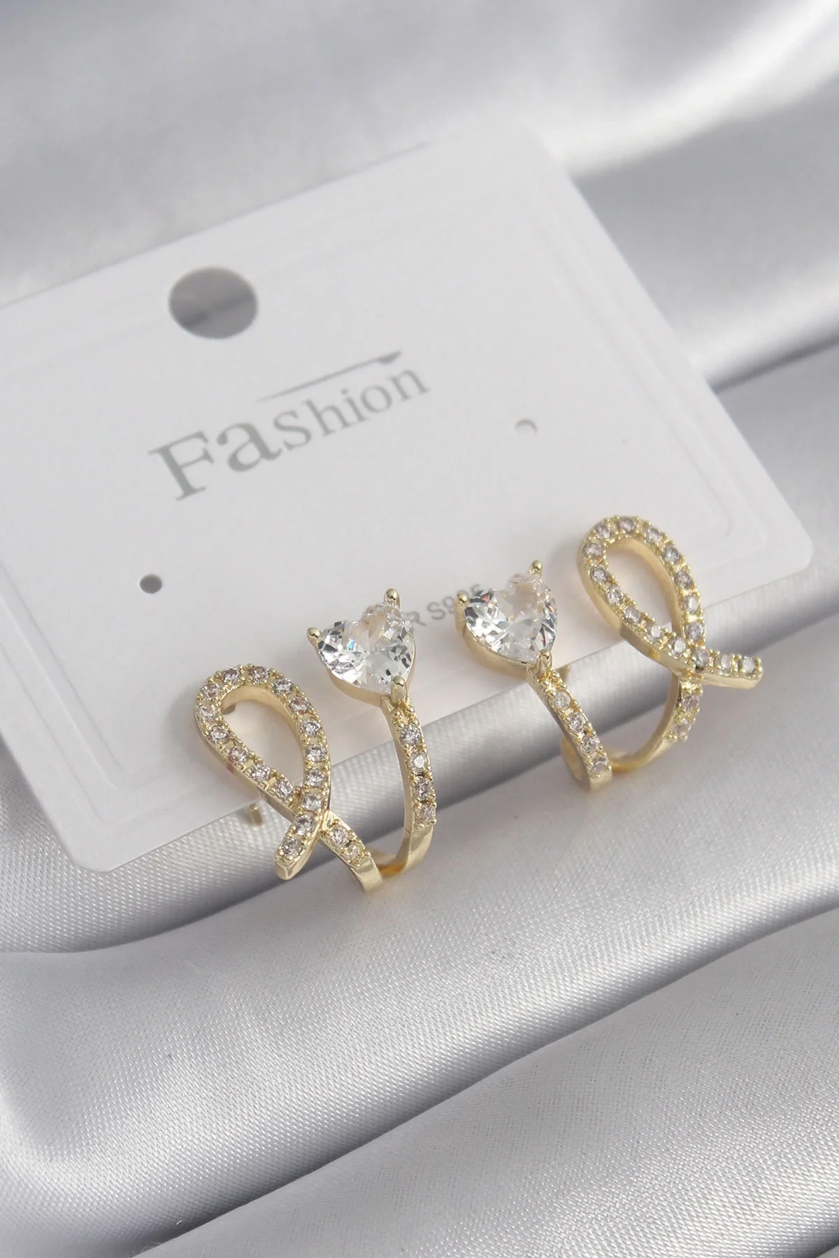 Pirinç Gümüş Renk Zirkon Taşlı Kalp Model Kadın Küpe