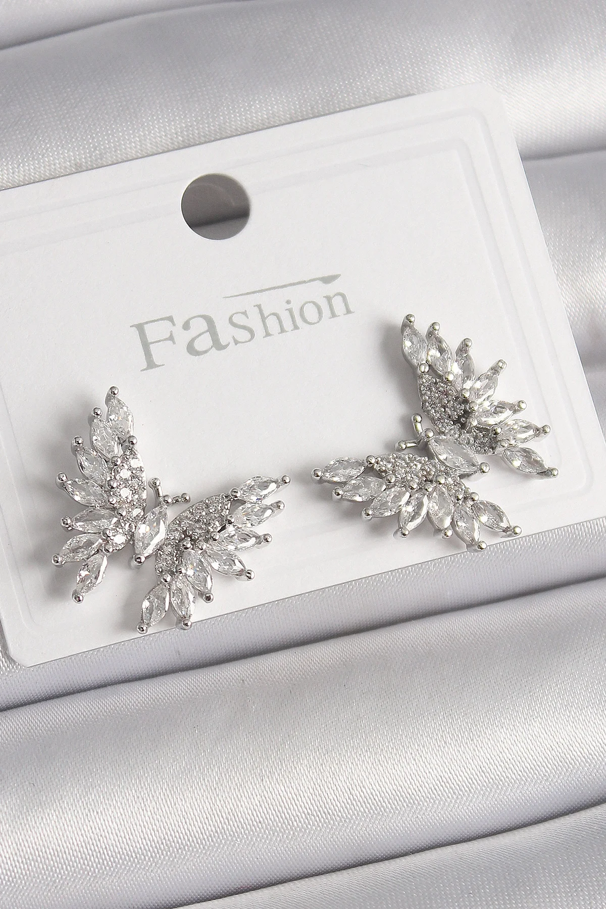 Pirinç Gümüş Renk Zirkon Taşlı Kelebek Model Kadın Küpe