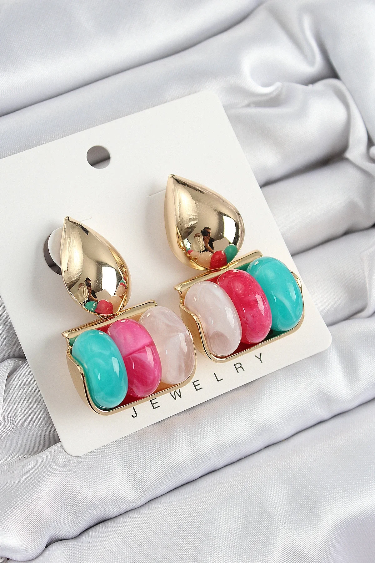 Pirinç Karışık Renk Vintage Model Kadın Küpe