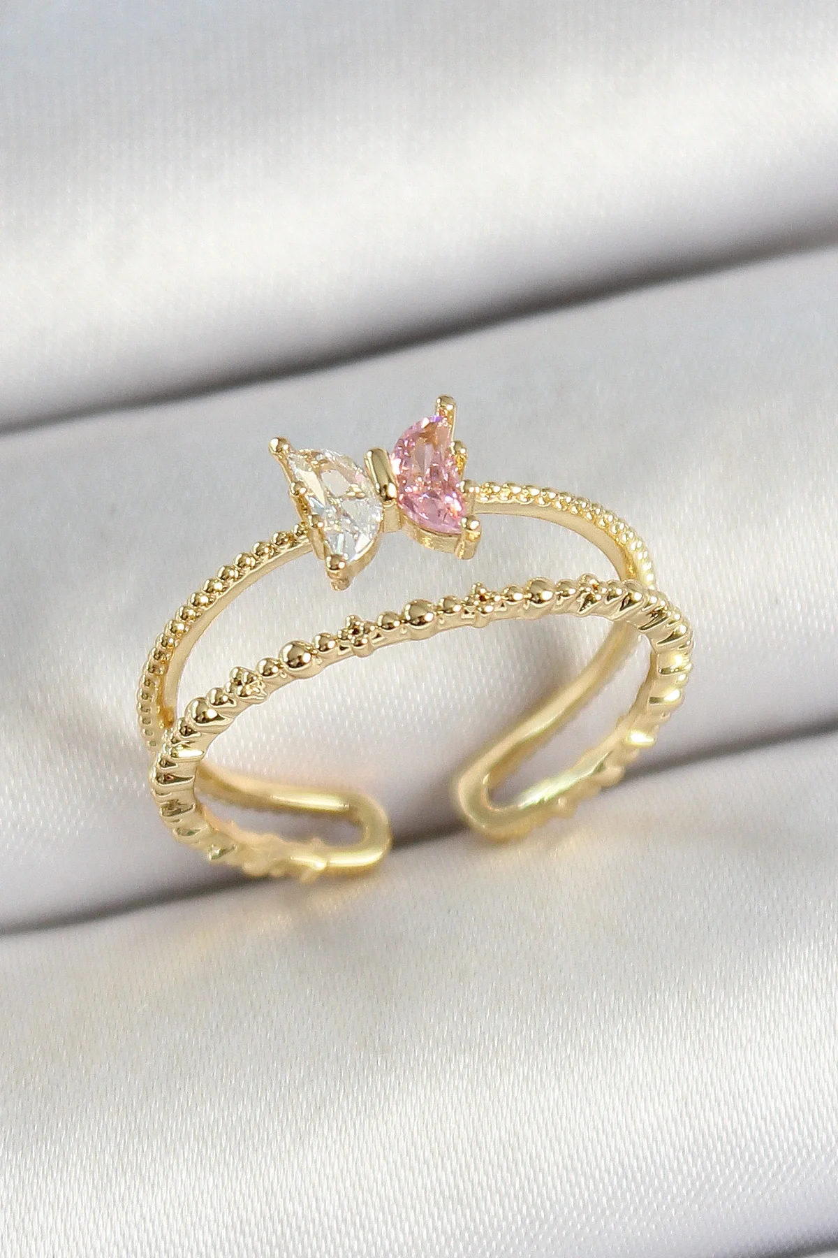 Pirinç Kelebek Figürlü Zirkon Taşlı Gold Renk Ayarlanabilir Kadın Yüzük