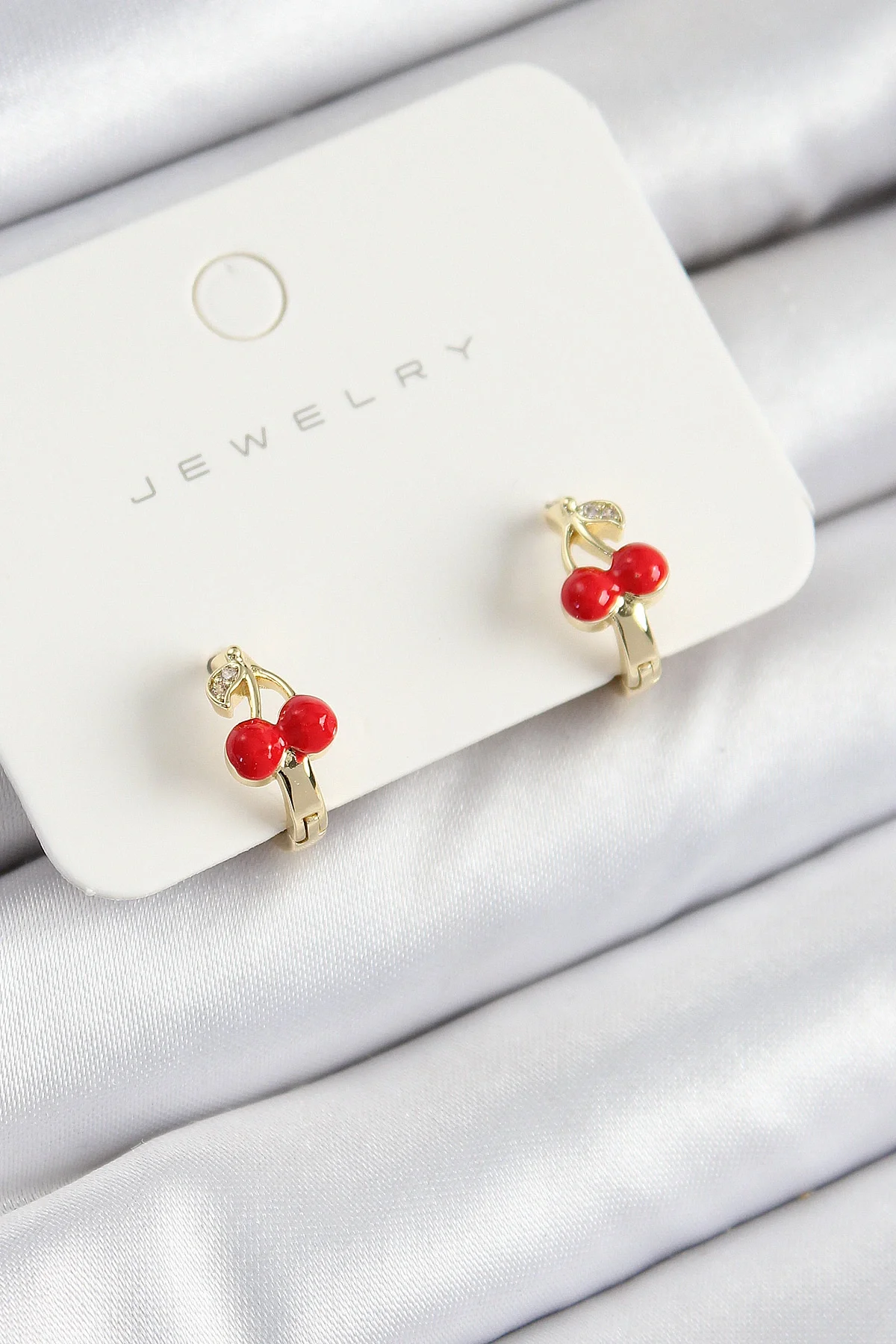 Pirinç Kiraz Model Gold Renk Çocuk Küpe