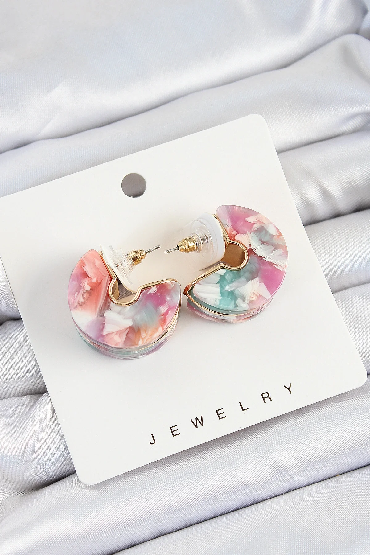 Pirinç Mermer Desenli Vintage Yarım Halka Model Gold Renk Kadın Küpe