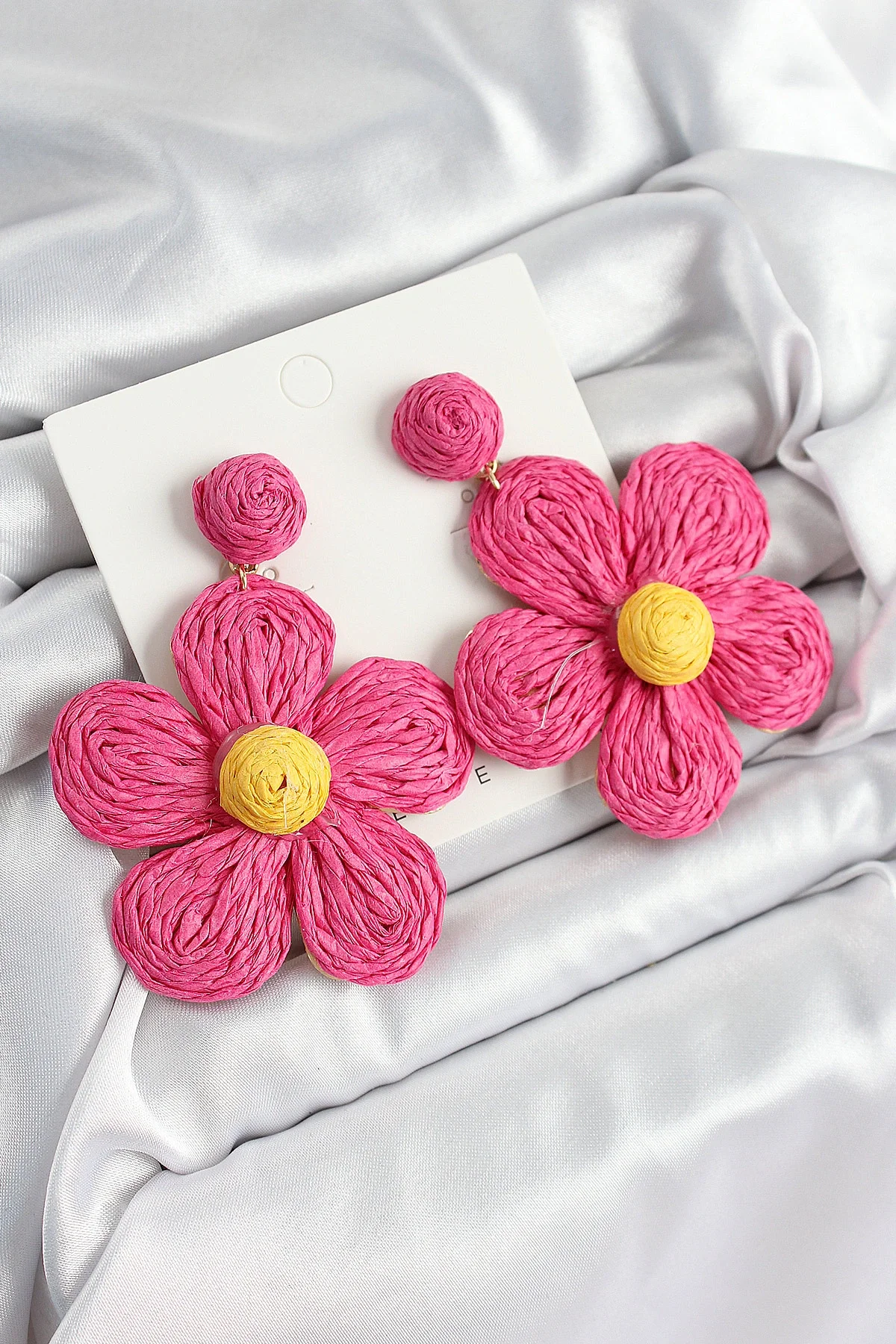Pirinç Pembe Papatya Model Gold Renk Kadın Hasır Küpe