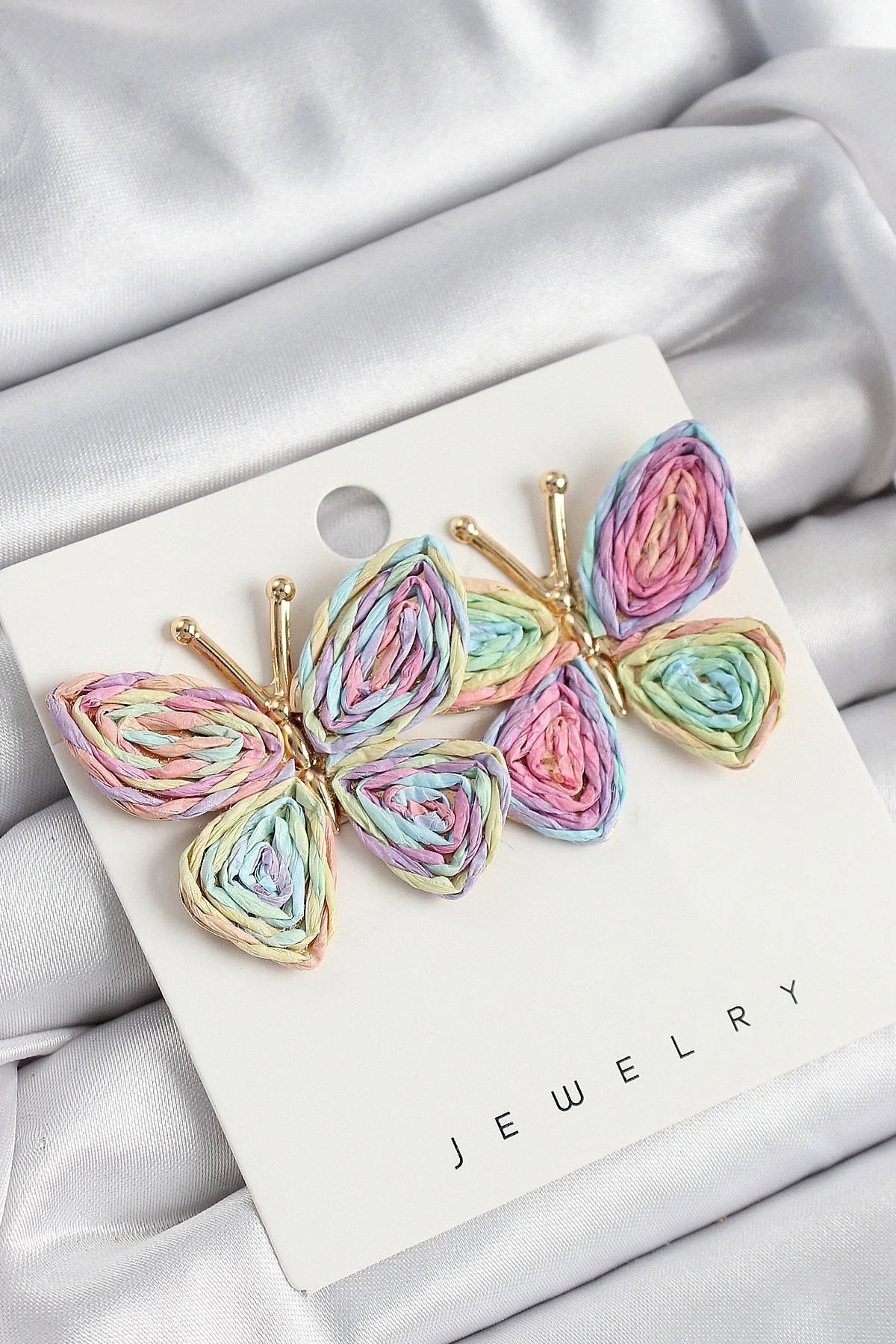 Pirinç Rainbow Kelebek Model Gold Renk Kadın Hasır Küpe