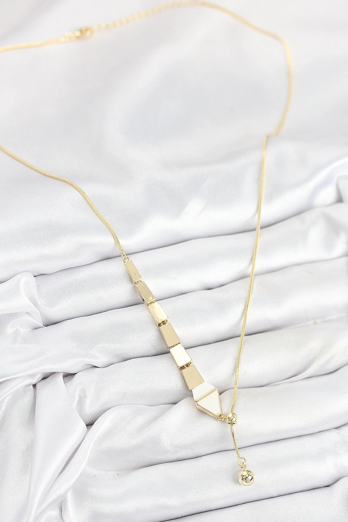 Pirinç Yılan Model Gold Renk Asansörlü Kadın Kolye