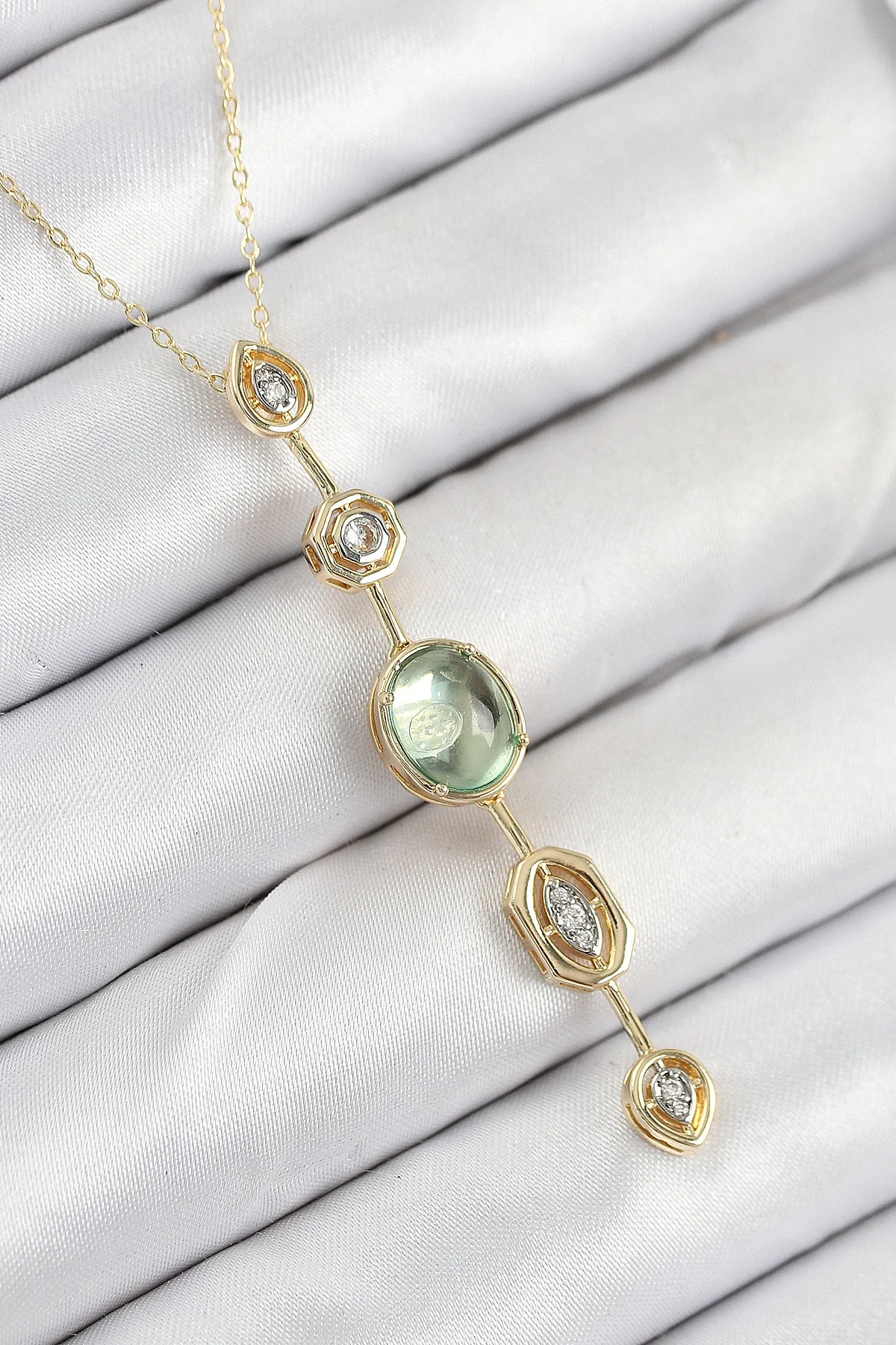 Pirinç Zincir Yeşil Gold Renk Zirkon Taşlı Y Kolye