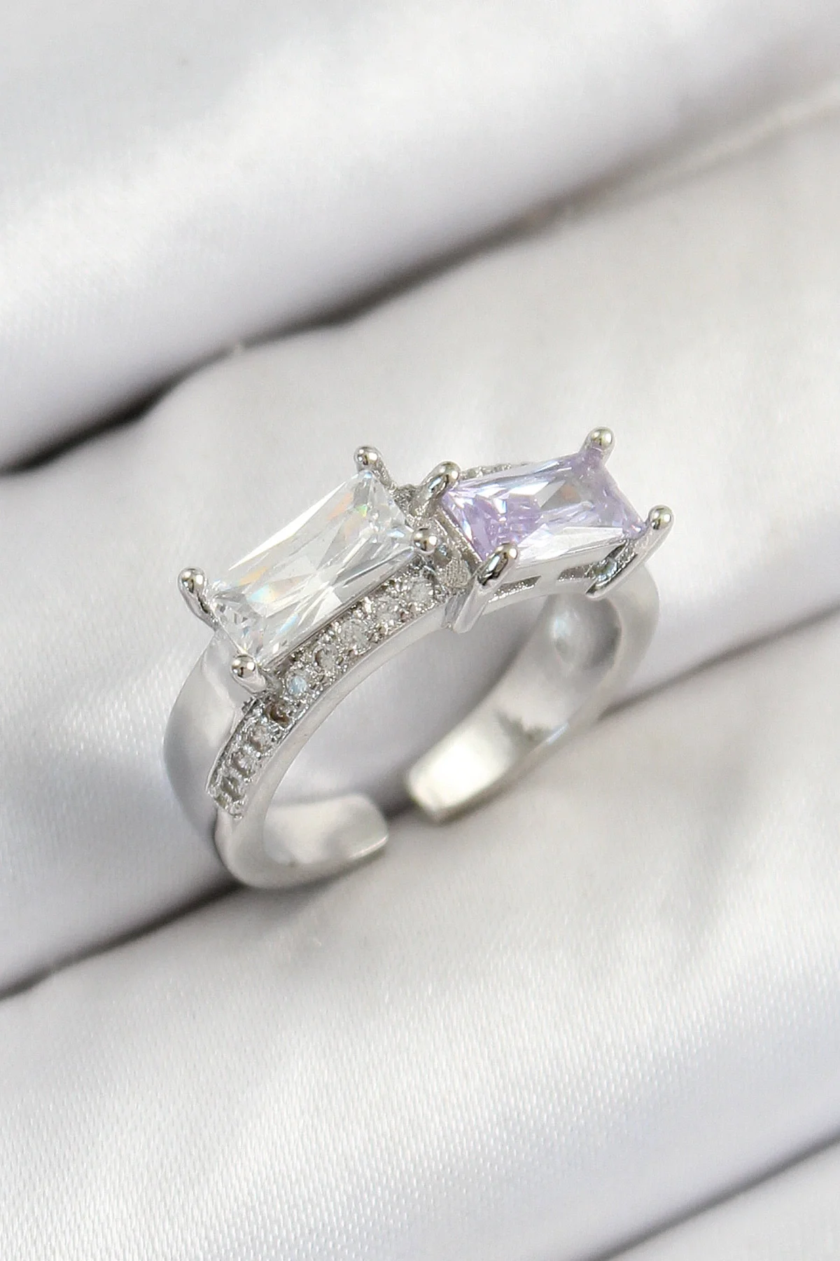 Pirinç Zirkon Taşlı Dikdörtgen Model Gümüş Renk Kadın Yüzük
