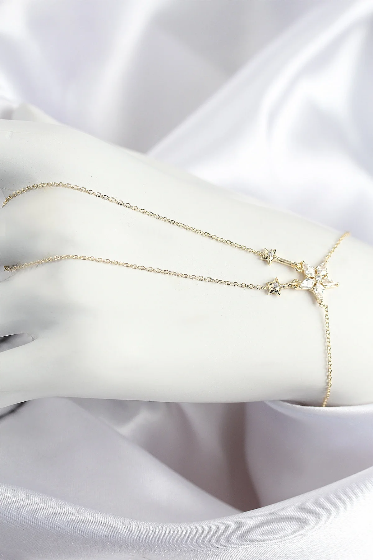 Pirinç Zirkon Taşlı Yıldız Model Gold Renk Şahmeran