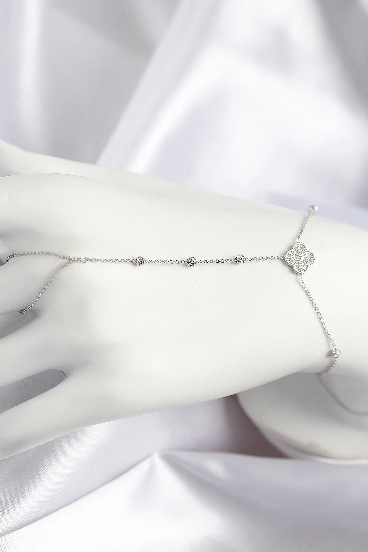 Pirinç Zirkon Taşlı Yonca Model Gümüş Renk Şahmeran