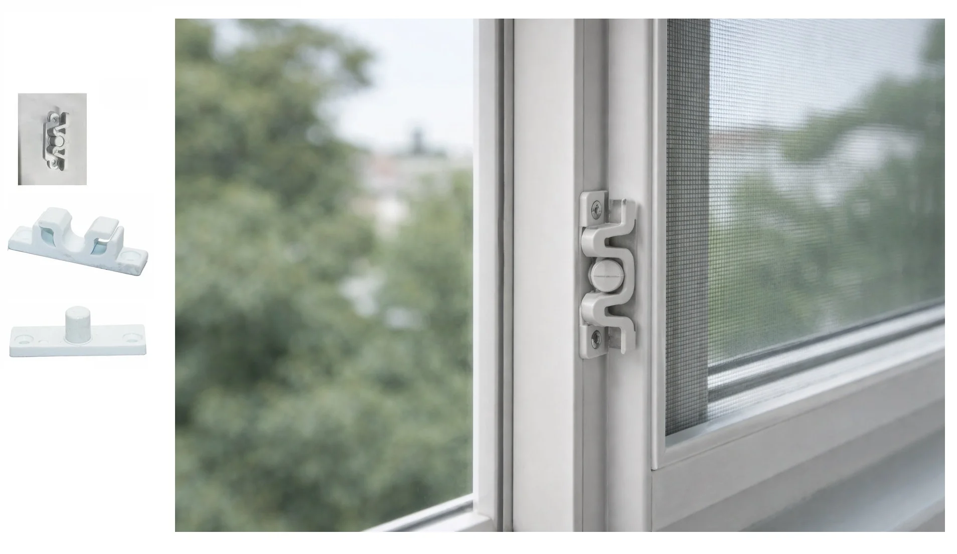 Minimal tasarımı sayesinde pencere estetiğini bozmaz. Beyaz rengi PVC pencere sistemleri ile uyum sağlar. Evlerde, balkon kapılarında ve ofislerde kullanılan sineklik sistemleri için ideal bir sabitleme çözümüdür.