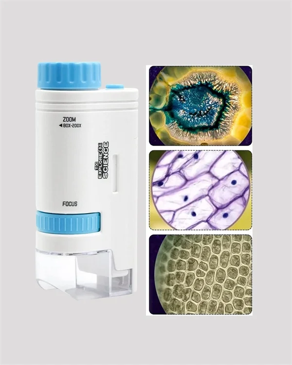 Taşınabilir Mini Mikroskop LED Işıklı 80X–200X Büyütmeli ve Odak Ayarlı