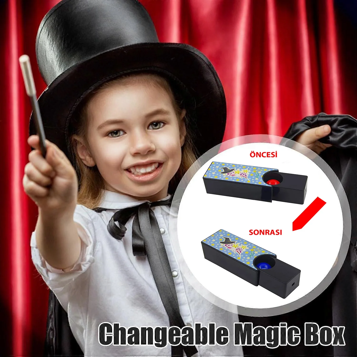 Çocukların sihir dünyasına adım atmasını sağlayan Renk Değiştiren Sihirli Top Kutusu (Magic Change Box), hem eğlenceli hem de etkileyici bir sihirbazlık hilesi sunar. Kutunun içine bırakılan top, seyircilerin gözleri önünde farklı bir renkte geri çıkarak küçük sihirbazlara büyüleyici bir gösteri yapma fırsatı verir.