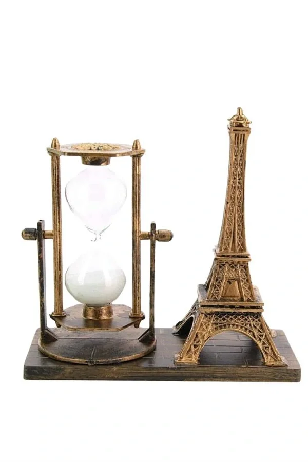 Retro Eyfel Kulesi Ve Kum Saati Dekoratif Ahşap Görünümlü Masa Biblosu