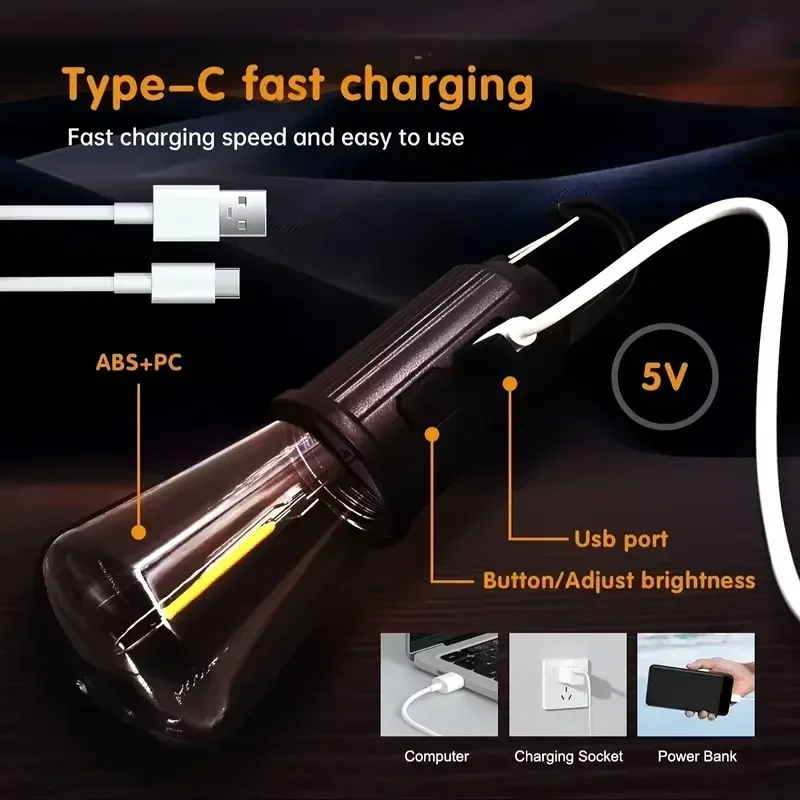 Type-C Şarjlı LED Kamp Lambası – Uzun Ömürlü Pil ve Yüksek Parlaklık