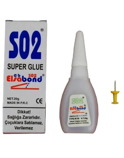 Hızlı yapıştırıcı elsa bond s02 japon yapıştırıcısı olarakta bilinen, 20 gr lık tekrar kullanılabilir tüplerde paketlenmiş, plastik, ahşap, seramik, kauçuk, deri, metal ve daha birçok yüzeyde kullanılabilen bir " japon yapıştırıcı " dır