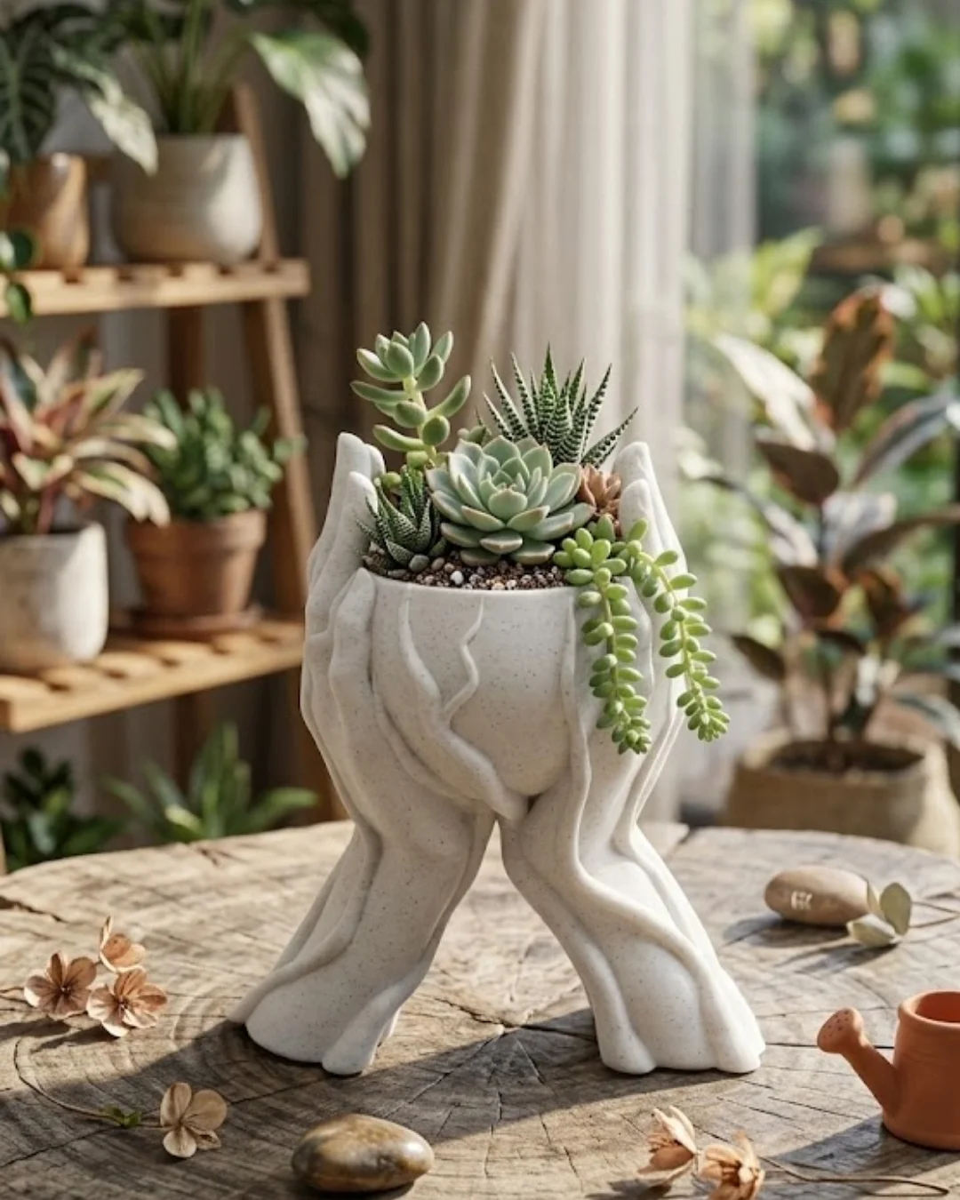 Dekoratif 3D El Tasarımlı Vazo Saksı Modern Ev Dekorasyon Aksesuarı