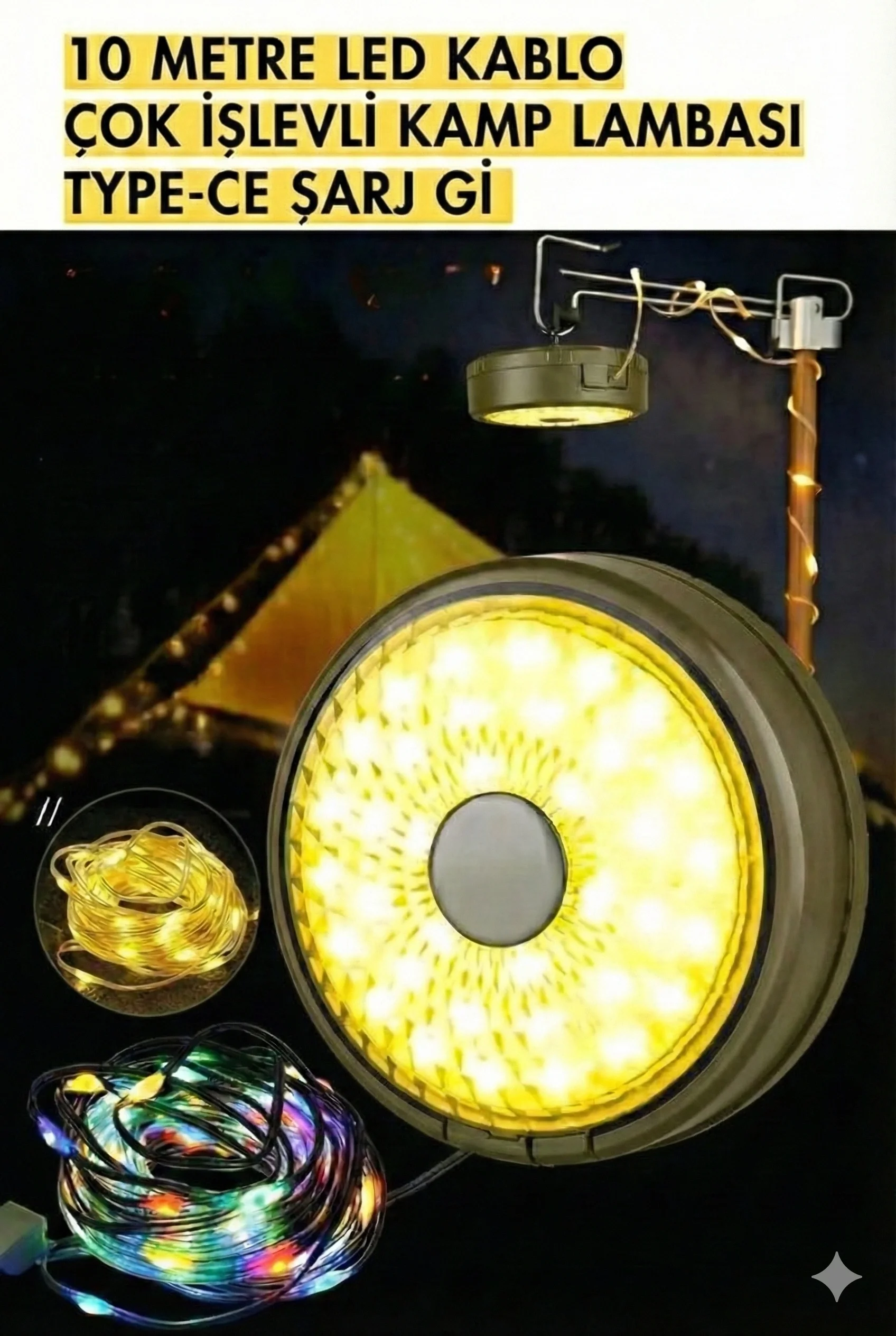 Çok fonksiyonlu bu ürünü led şerit içerisinde sarılıyken sabit askı ile asılarak aydınlatma lambası olarak, ya da 10 m şeridi dilediğiniz boyda çekerek dilediğiniz uzunlukta ve renkte şerit led olarak kullanabilirsiniz.