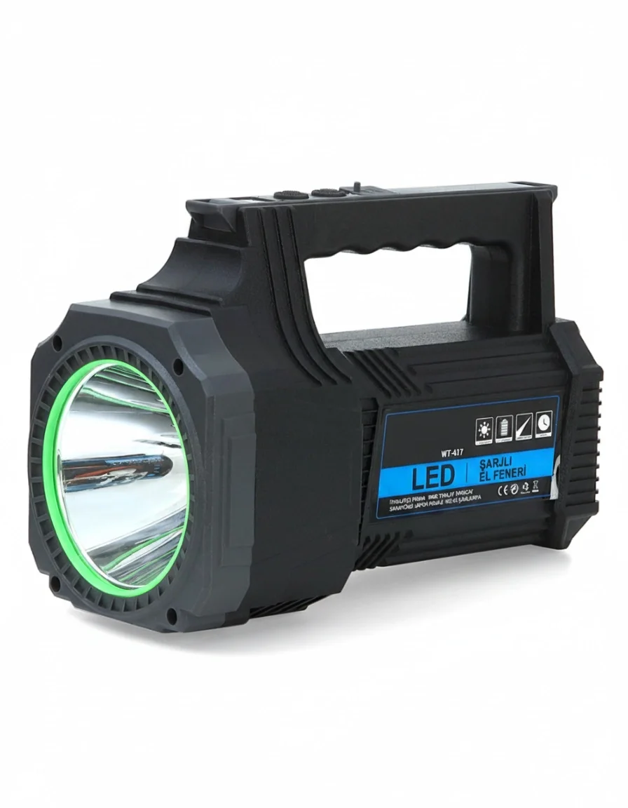 Karanlıkta hiçbir detayı kaçırmayın! 25W gücündeki şarjlı dev boy LED el feneri, yüksek parlaklık ve uzun menzil performansıyla geceyi gündüze çevirir.