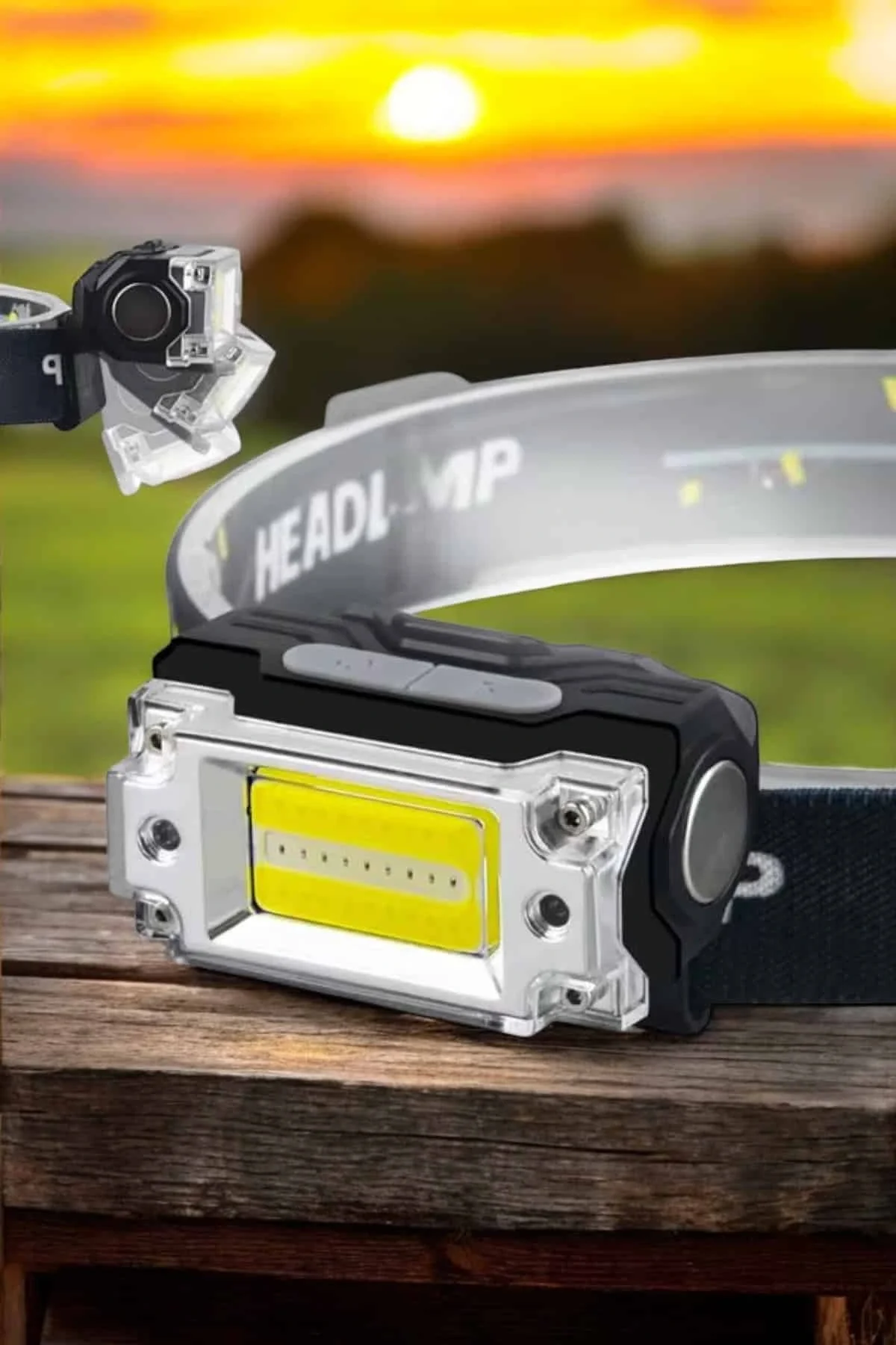 COB + XPE LED Kafa Feneri 800 Lumen USB Type C Şarjlı Çok Modlu