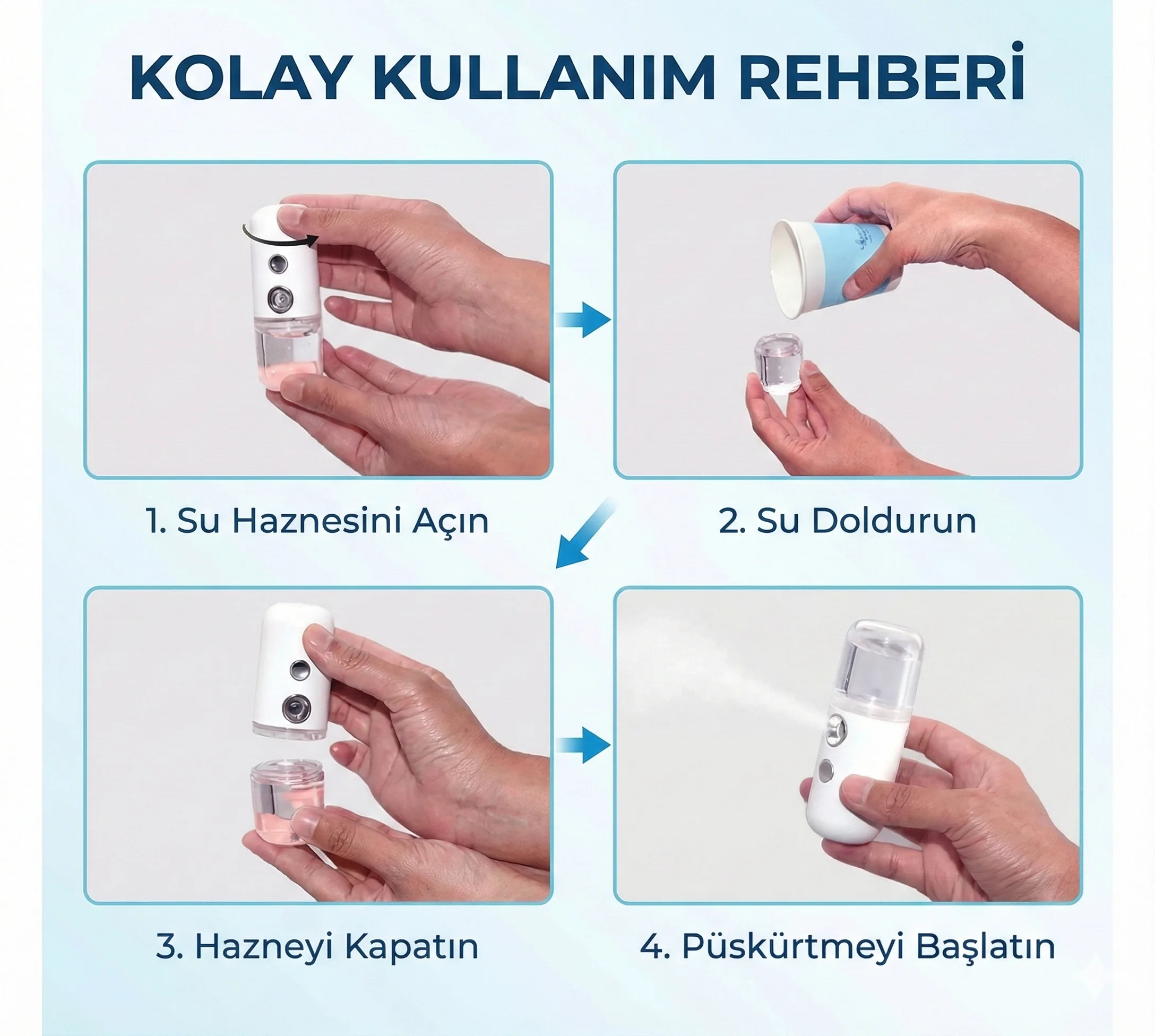 - Nano Sprey Mini Şarjlı Dezenfektan Makinesi Mini Dezenfektan Makinesi İle Anahtarlık, Cüzdan, Cep Telefonu, Elleri Ve Hatta Araç Direksiyonunu Ve Hatta Dezenfekte Etmek İçin İhtiyacınız Olan Her Şeyi Dezenfekte Edebilirsiniz. Ürünün İçine Dezenfektan Alkol, Kolonya Veya Su Koyabilirsiniz. Ayrıca Nebülizör Olarak Kullanabilir Yüz Veya Derinlemesine Temizlemek İçin Su Koyabilirsiniz.