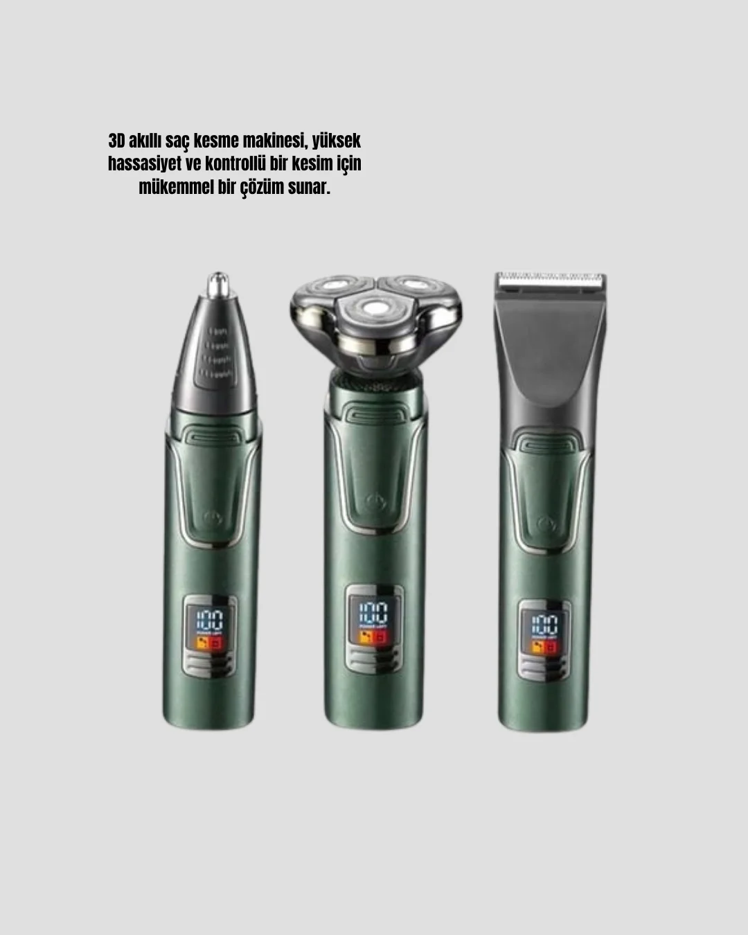 Şarjlı ve Kablosuz 3 Başlıklı Profesyonel Bakım Seti – Saç, Sakal, Burun ve Kulak Düzeltici