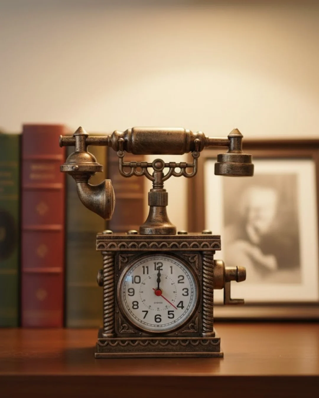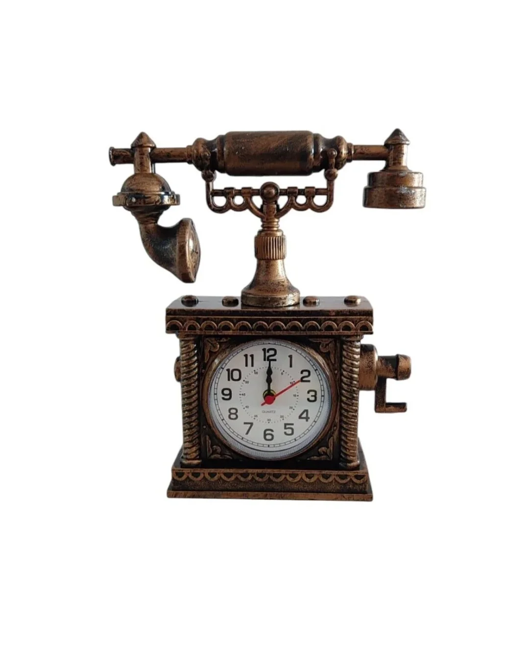 Vintage Telefon Tasarımlı Masa Saati ve Çalar Saat Dekoratif Model