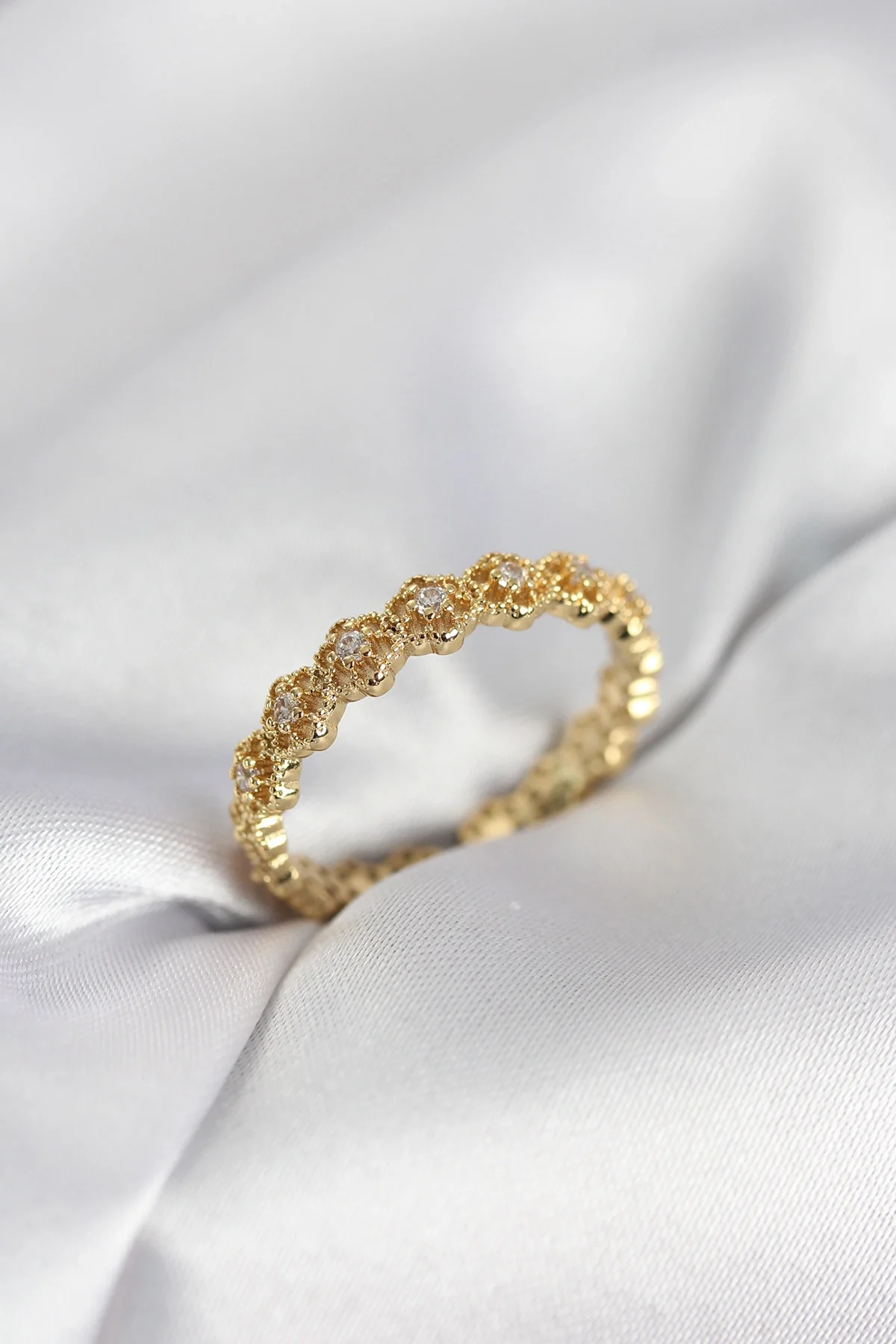 Sıralı Çiçek Model Gold Renk Zirkon Taşlı Kadın Yüzük