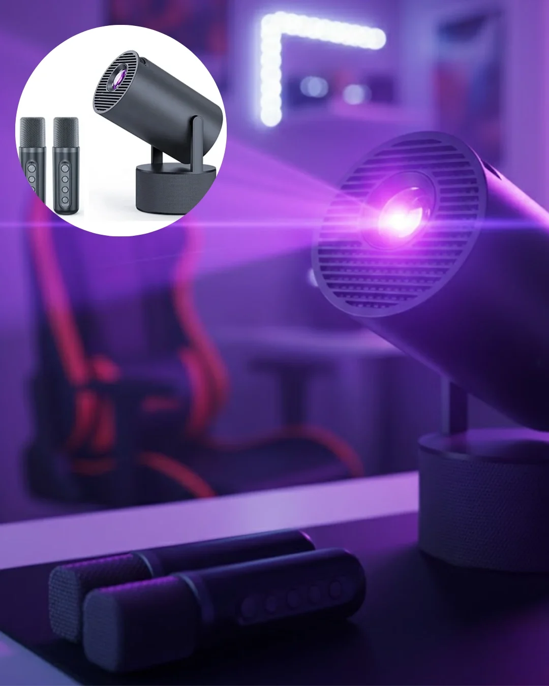 Android Sistemli Projeksiyon Kareoke Cihazı 180° Döner Başlıklı