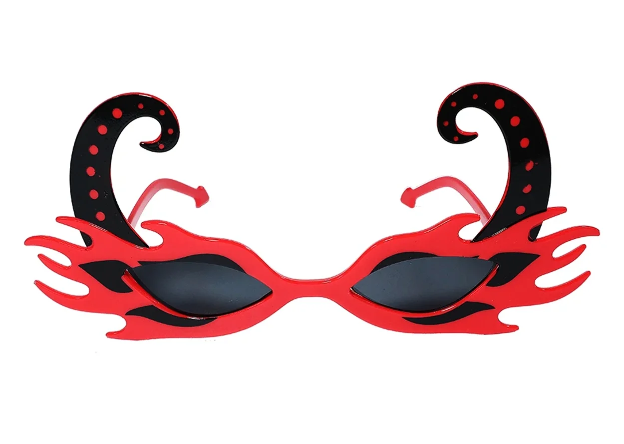 Siyah Boynuzlu Kırmızı Renk Alevli Parti Gözlüğü 21x10 cm
