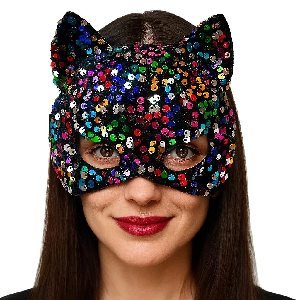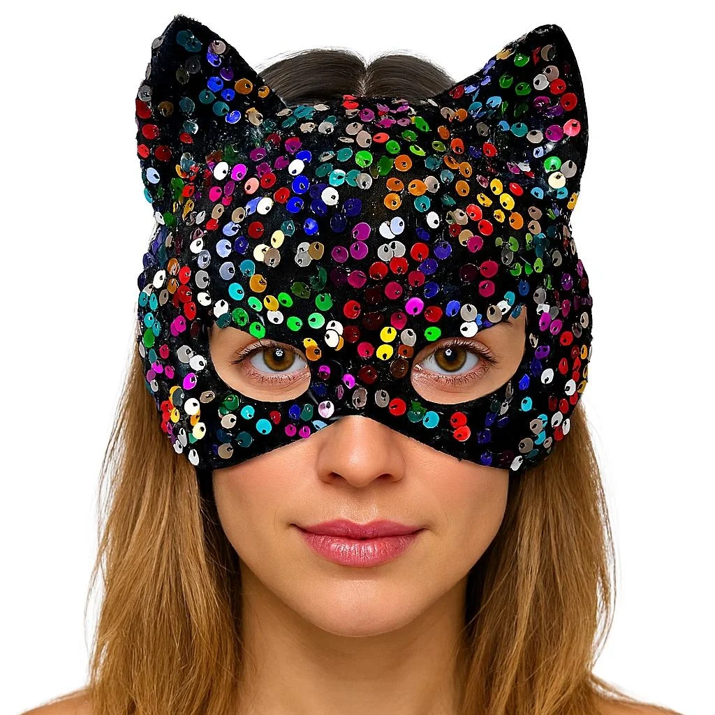 Ürün Adı: Siyah Kadife Kumaş Üzerine Rengarenk Payetli Pullu Parti Maskesi