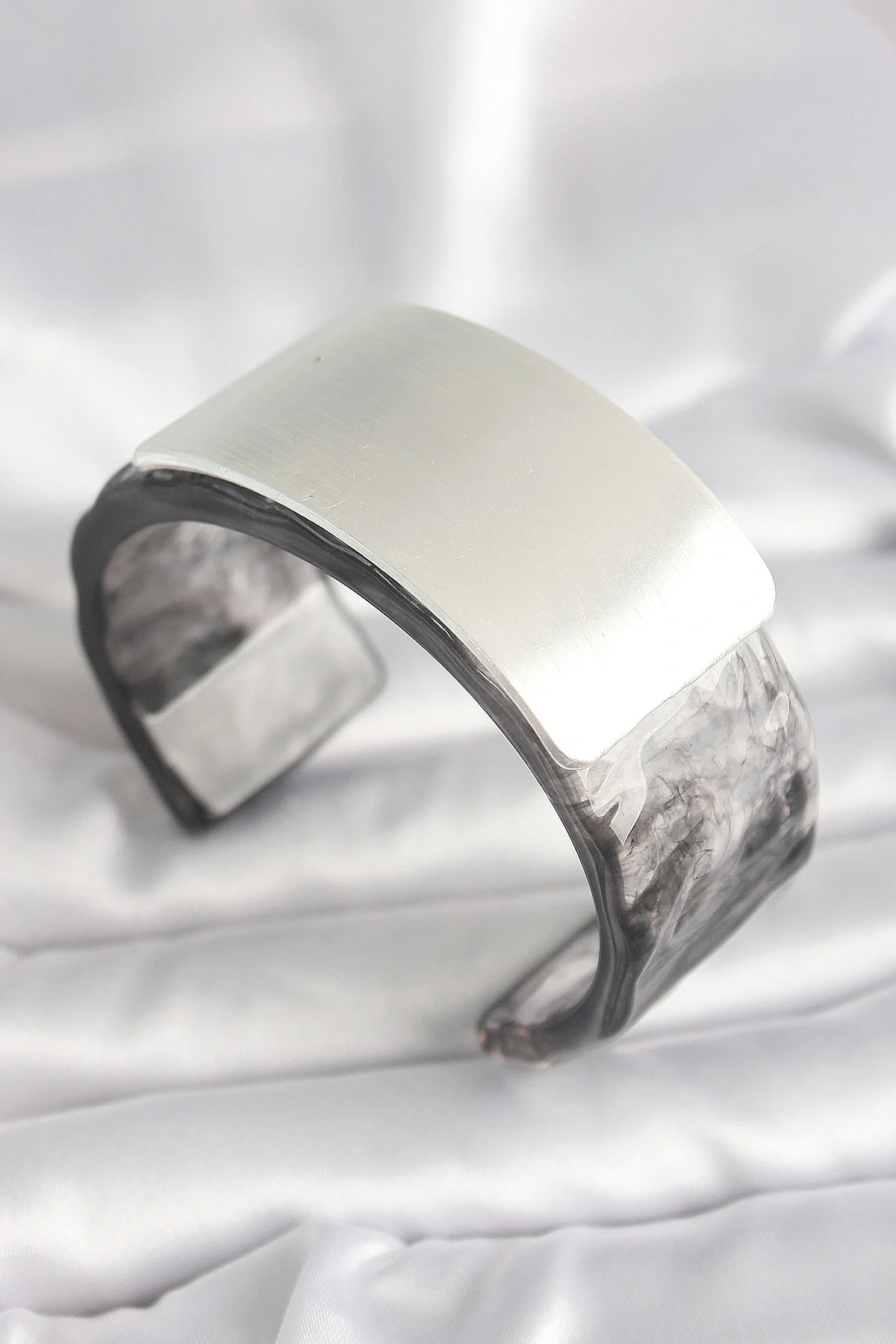 Siyah Mermer Desen Akrilik Plastik Dikdörtgen Plaka Model Vintage Kadın Bilezik