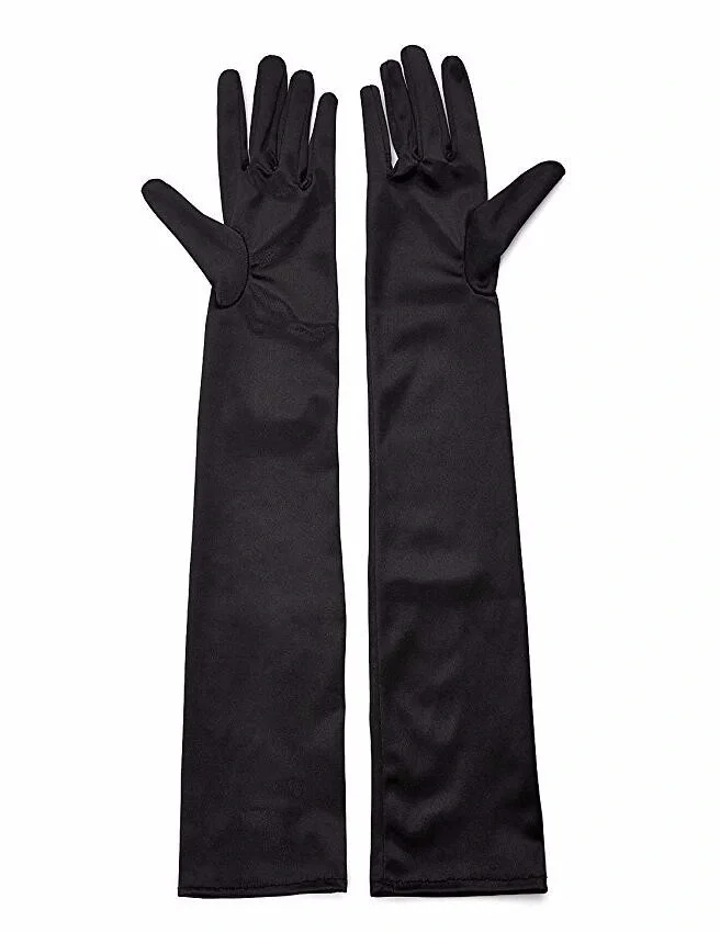 Siyah Renk Dirseğe Kadar Uzun Kumaş Eldiven (5047)